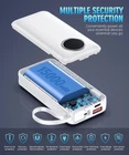 Portable charger built-in Type-C cable and USB port support PD30W fast charging. Portable charger power bank built-in IOS cable supports 20W fast charging. Power bank with built-in IOS cable and Type-C cable. With very compact shape, portable charger is convenient to carry go out.(Type-C cable is not for iPhone 15 Series) Portable charger power bank allows charge 3 devices at the same time, battery pack is suitable for most devices on the market, such as iPad and iPhone, Android Phones and so on. (Attention: Type-C port only support input.) Portable battery charger adopts high-density A-grade lithium polymer battery cells, with a large capacity of 15000mAh in a compact size. Portable phone charger can let you get rid of the anxiety about the remaining power of your phone at all times and places. Power bank equipped with LED percentage display screen to show the remaining power accurately in real time. Battery bank makes it easier for customers to grasp the power level of the product.