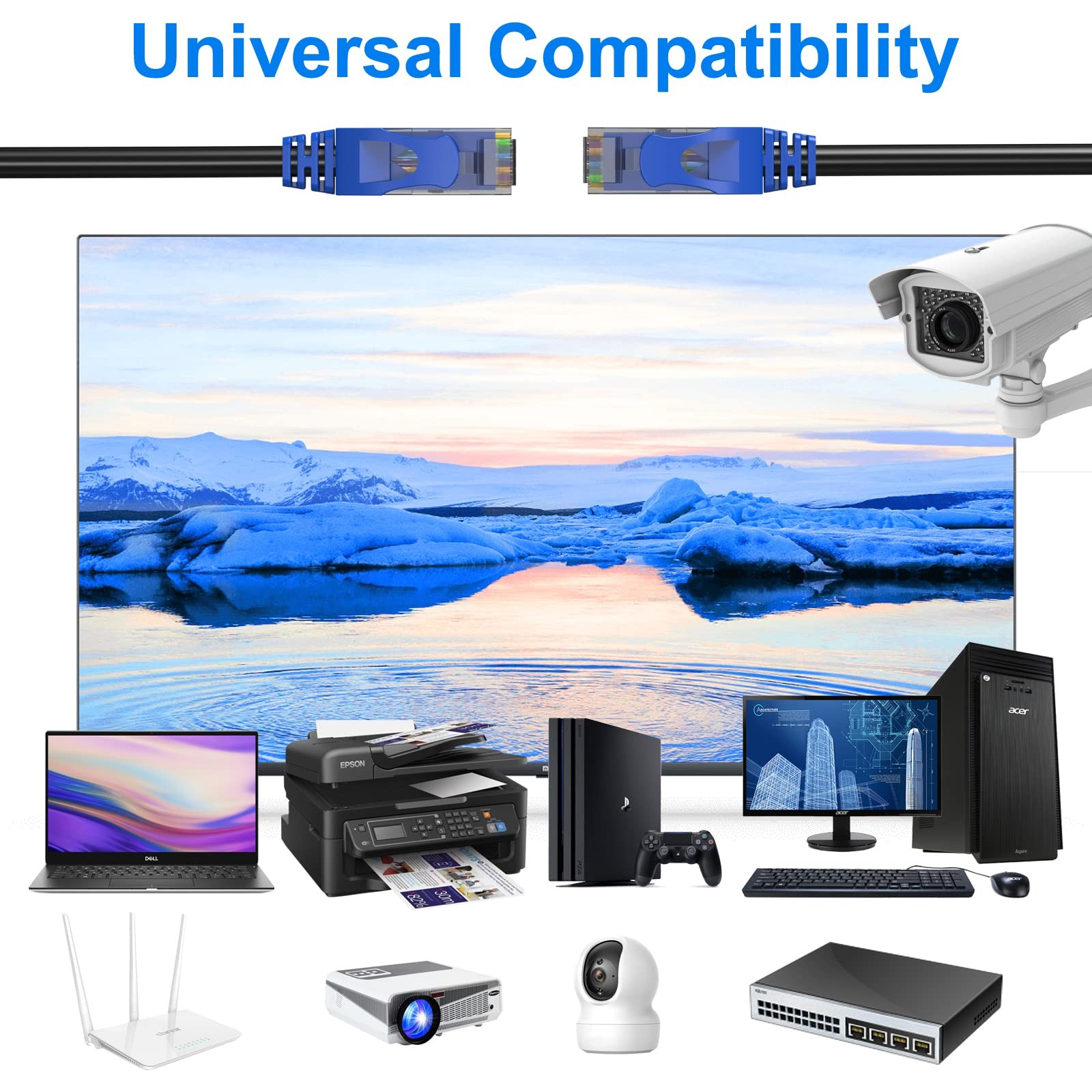 150FT Cat6 Outdoor Ethernet Cable, In-Ground, Heavy Duty Direct Burial, 24AWG CCA Patch Cord, POE, UTP, Waterproof, LLDPE UV Resistant, Network, Internet, LAN, Cat 6 Cable 150 Feet with 25 Cable Ties Outdoor and Direct Burial: CAT6 outdoor ethernet cable can easily cope with extreme weather such as sun, thunderstorm, blizzard, frost, and is suitable for soil, underground and dirt environments. We have provided you with 25 cable ties Rugged and Durable: Our cat 6 outdoor cable is 24AWG with 4 pairs conductors and RJ45. It uses 550Mhz to transfer data up to 10Gbps, to provide you with the most stable signal and lower delay. Of course it works perfectly indoors Uv Protection Jacket: Designed for the outdoors. To cope with extreme weather and temperatures. Uv and rain protection, more durable than a regular PVC jacket Wide Range of Applications: Compatible with office, game and home devices. Backward compatible with Cat5e, Cat5. Compatible with Playstaion3, PS4, PS5, Xbox, XSX, XSS, Network adapter, hub, router, modem, etc. Bring you the best data, sound and video experience 100% After-sales Service Experience: 30 days of unsatisfactory use can apply for return. Replacement or refund is available for quality problems within 2 years. If you have any questions, please let us know immediately and we will provide you with a solution within 48 hours