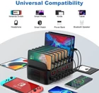 Keep all your devices charged and organized with this universal charging station docking for up to 16 devices. With 16 ports and fast charging capabilities, this charging station is perfect for smartphones, tablets, laptops, and smartwatches. The charging dock comes with a 46-inch cable and a slim, matte design that makes it perfect for travel, wall mounting, or setting on your desktop. Included components of this charging dock are a charging cable and a charging dock, and it is compatible with all brands and models. The charging station input voltage is 100-240V and the connector type is USB Type A. It is made of plastic and comes with a 3.5A USB connectivity technology. Say goodbye to messy cables and keep your devices fully charged with this universal charging station docking.