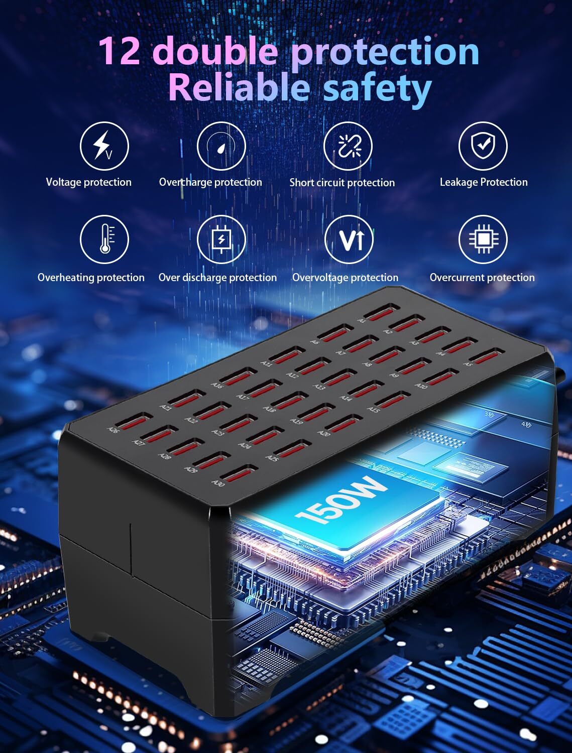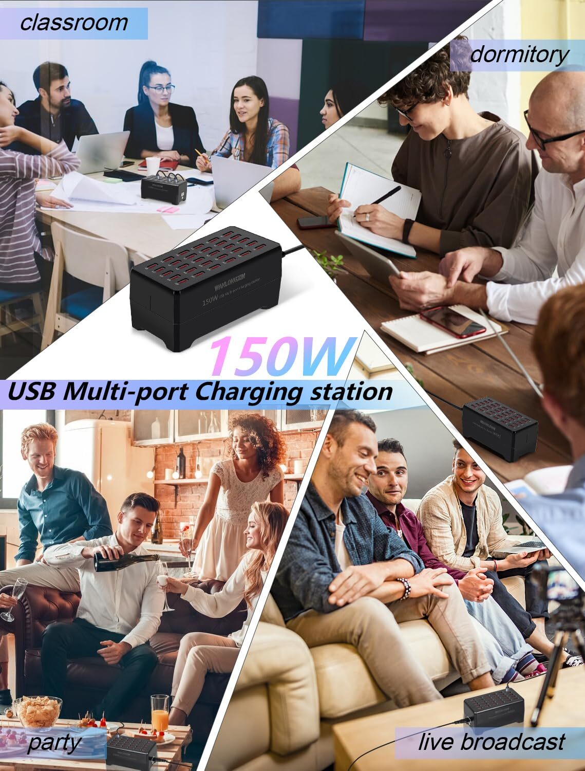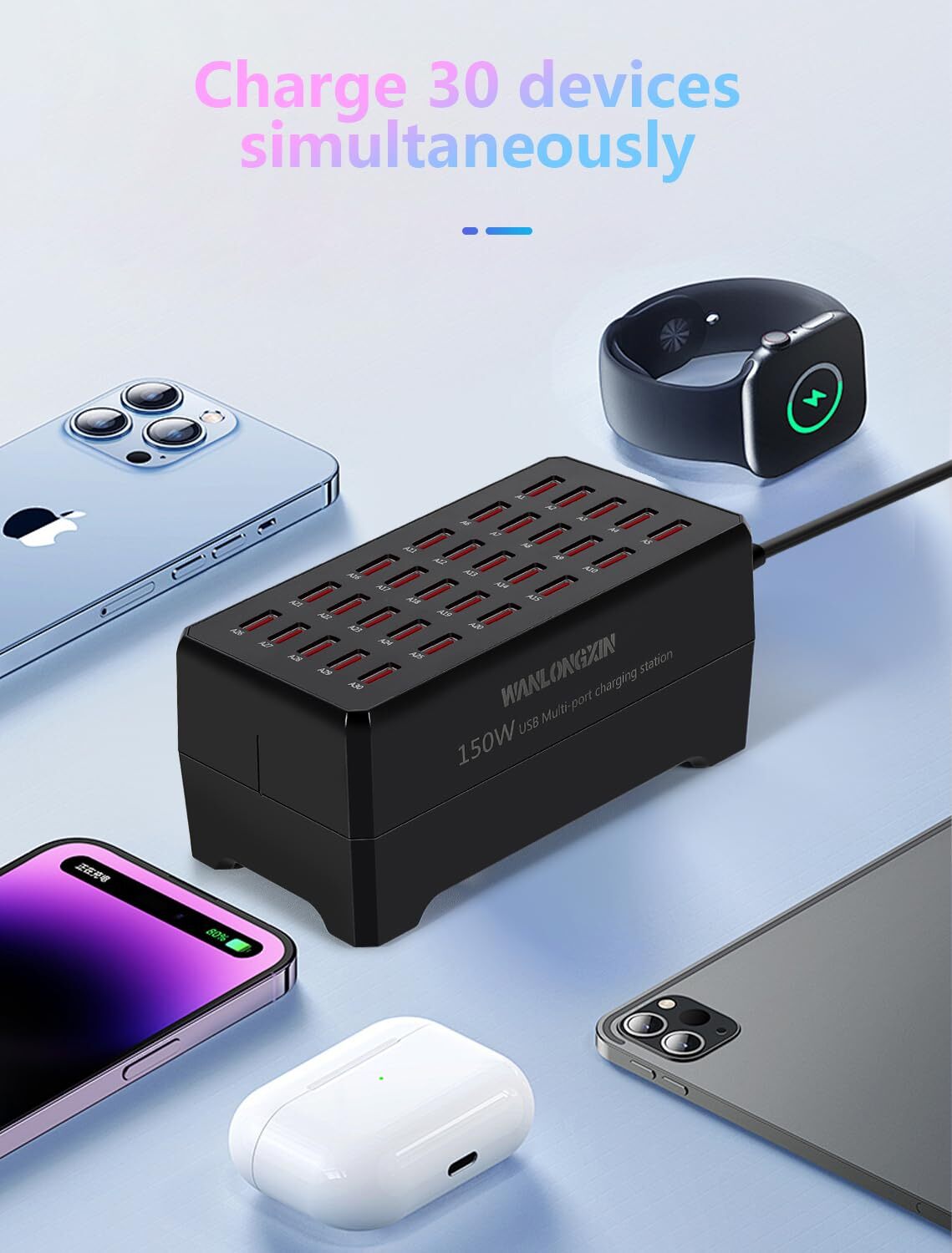 Charging Station, 150W30Port USB Charging Station, Multiple USB Charger Station, Charging Station for Multiple Devices, Multi USB Charging Station, Chargers for Multiple Devices Description and features 【CHARGING STATION FOR MULTIPLE DEVICES】 The charging station (150W 30-Port USB charging station) provides fast charging for all your 5V devices. This multi USB charging station is perfect for households and businesses with multiple gadgets 【MULTI-PORT AND FAST USB CHARGING STATION】 This charging station features 8 ports for simultaneous charging. The USB charging station ensures all your devices get charged quickly and efficiently. Ideal for those needing a multiple USB charger station 【COMPATIBILITY USB CHARGING STATION】 The charging station supports a wide range of devices, Including smartphones, IPad, and e-readers. This charging station for multiple devices eliminates the need for multiple chargers, Making it a versatile multi USB charging station 【WIRELESS AND SCREEN DISPLAY USB CHARGING STATION】 The charging station includes wireless charging capability and a screen display for monitoring. This multi charging station keeps all your devices powered and organized, Making it one of the best chargers for multiple devices 【RELIABLE USB CHARGING STATION】 The charging station for multiple devices delivers reliable power management. This multiple USB charger station ensures efficient charging for all your gadgets, Making it a top choice for a Multi USB Charging Station. Return Policy ⦿ All our products come with a 30-Day Return Policy. If you would like to return your item and you are within 30 days of the purchase, and it is still in its original condition, you can return the item by contacting us through eBay messaging. ⦿ If you are not 100% satisfied, please let us know the Detailed Problem,We will give you a 100% satisfactory solution ⦿ If you received an incorrect, damaged, defective, or item not as described, contact us for a partial/full refund or replacement on our cost. ⦿ Free Shipping and Free Return 30-Days Money Back Guarantee. ☎ For all returned products, buyers MUST contact us for the returning address. Shipping ⦿ We do not ship to a different address. we will ship to the address you provide on the ebay only. Please check your address before purchase. ⦿ It should take 2-4 business days for the product to reach your destination. ⦿ If the product doesn't reach your destination within the time limit, please give it an additional 1-2 business days in case of postal delays and/or possible technical issues. ⦿ We use a selection of shipping services such as UPS, FedEx, USPS etc. ⦿ We ship only to the 48 contiguous states of America. We do not ship to Hawaii, Alaska, US Protectorates, APO/FPO addresses. Local pickups are not offered. ☎ If it takes any longer than that, please do not hesitate to contact us to resolve the issues. Contact us ☎ Please contact us via eBay message. And your message will be replied within 1 business days. For any queries, please feel free to contact us, we will get back to you as quickly as possible. Customer 100% satisfaction is our first priority and goal. We are always working hard for maintain high standards of excellence and resolve your problem in best way. So your POSITIVE FEEDBACK is very important. If you have any problem of the item, please feel free to let us know before leaving your feedback. We will try our best to solve your problem. About us We are here to give you quality products, competitive pricing and amazing service in order to make sure you get the best deal online, Thank you for your business and the opportunity to serve you.