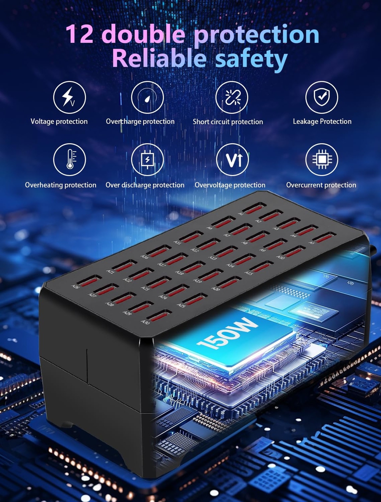 Charging Station, 150W30Port USB Charging Station, Multiple USB Charger Station, Charging Station for Multiple Devices, Multi USB Charging Station, Chargers for Multiple Devices Product Details Brand: WANLONGXIN Connectivity Technology: USB Connector Type: Proprietary Compatible Devices: Cellular Phones Compatible Phone Models: iPhone 15/14 mini/15 Pro Max, iPhone 13/13 mini/13 Pro Max ,iPhone 12/12mini/12 Pro Max, iPhone SE, iPhone 11, iPhone X/XR/XS/XS Max, iPhone 8, iPhone 8 Plus, iPhone 7, iPhone 7 Plus, iPhone 6/6S, iPhone 6/6S Plus, Apple iPad, iPad air, iPad air 2, iPad mini 3 2 1, iPad Pro 11”, iPad Pro 2018, Pixel C/3/2/XL, LG G6, Nexus 6P/5X, HTC, LG G3, Google Nexus, Nokia, Motorola; Google Nexus 6P, LG G5, HTC 10, Samsung Galaxy S8, Samsung Galaxy S8 Plus, Samsung Galaxy S7. See more Included Components: 150W USB Charging Station Special Feature: Multiple Output Ports Color: Carbon black Input Voltage: 240 Volts Mounting Type: Tabletop Mount Package Dimensions: 8.31 x 3.66 x 3.27 inches Item Weight: 1.41 pounds Item model number: WT268 Date First Available: March 23, 2024 Manufacturer: Shenzhen Wanlongxin Electronic Technology Co., Ltd. CHARGING STATION FOR MULTIPLE DEVICES The charging station (150W 30-Port USB charging station) provides fast charging for all your 5V devices. This multi USB charging station is perfect for households and businesses with multiple gadgets MULTI-PORT AND FAST USB CHARGING STATION This charging station features 30 ports for simultaneous charging. The USB charging station ensures all your devices get charged quickly and efficiently. Ideal for those needing a multiple USB charger station COMPATIBILITY USB CHARGING STATION The charging station supports a wide range of devices, Including smartphones, IPad, and e-readers. This charging station for multiple devices eliminates the need for multiple chargers, Making it a versatile multi USB charging station USB CHARGER BLOCK MULTIPLE PORTS This multi charging station keeps all your devices powered and organized, Making it one of the best chargers for multiple devices RELIABLE USB CHARGING STATION The charging station for multiple devices delivers reliable power management. This multiple USB charger station ensures efficient charging for all your gadgets, Making it a top choice for a Multi USB Charging Station.
