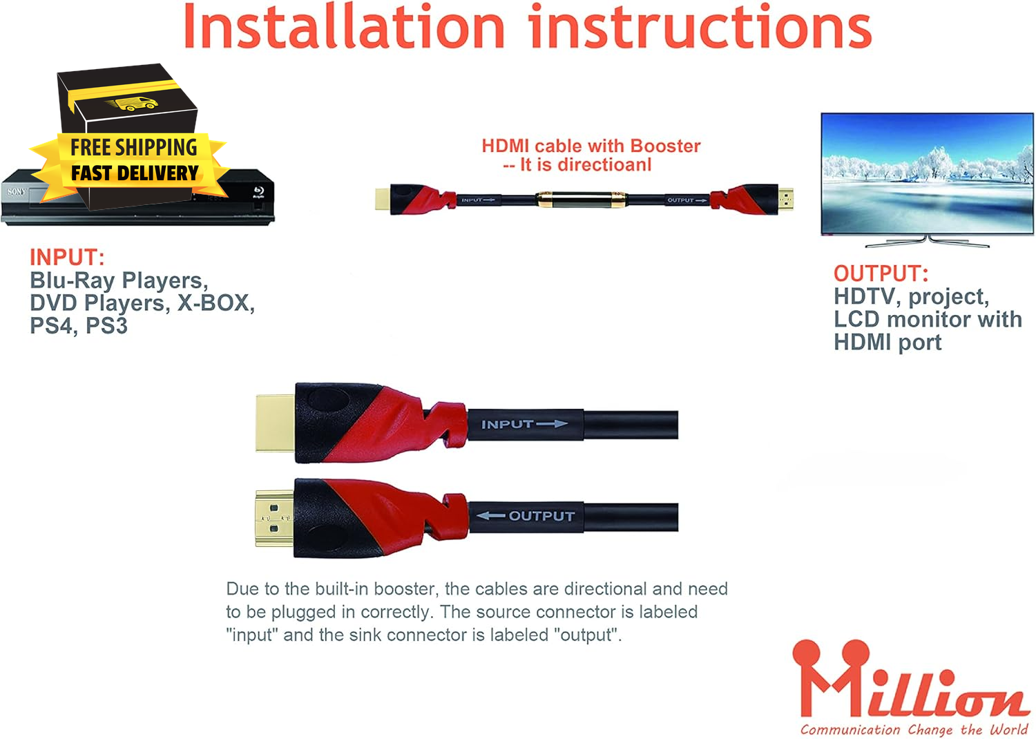 Store New Arrivals Add to Favorite View Feedback Contact High HDMI Cable (150 Ft) Built-In Signal Booster Supports 3D & Audio Return Channel - Support 1080P - 4K 30Hz - 150 Feet ⭐️⭐️⭐️⭐️⭐️ Description Item model number 4330483503 Unit Count 1 Count Data Transfer Rate 18 Gigabits Per Second Special Feature Braided, High Speed Indoor/Outdoor Usage Indoor Color Black Is Discontinued By Manufacturer No Cable Type HDMI Connector Type HDMI Compatible Devices Projector, Laptop, Scanner, Television, Router Item Weight 8.8 pounds Shape Round Number of Pins 19 Department unisex-adult Gauge 28.0 Connector Gender Male-to-Male Product Dimensions 15 x 2 x 14 inches Customer Package Type Standard Packaging Size 150 Feet High Speed HDMI Cable, 1080p (Full HD) Supports 3D - Audio Return Channel - 1440p - 1080p - Blu-Ray - PS3 - XBox 360 HDMI to HDMI 24k Gold Plated Connectors with braided thick 24 AWG cable core to further enhance picture quality 99.9% Oxygen Free Cable for Minimum Signal Degradation, ROHS Compliant Fully compatible with devices such as LCD / LED / 3D Televisions, Blu-Ray Players, DVD Players, PS4, PS3, XBOX ONE, XBOX 360, Wii U & more Due to the built-in booster, the cables are directional and need to be plugged in correctly. The source connector is labeled "input" and the sink connector is labeled "output". Million ULTRA Series HDMI Cable Connects a Blu-Ray player, computer, Apple TV, Roku, cable box, PS3, Xbox 360 or other HDMI-compatible device to your HDTV/display source. It combines HD audio & video (up to 2160p) into 1 cable for many home theater needs. Durably built for clear signals & minimal interference/physical strain, this heavy-duty 28AWG cable is triple-shielded with solid copper conductors & corrosion-resistant gold-plated solid metal-shielding. ULTRA Series cables are made from premium materials for a pro-grade output. It allows for a shared internet connection among compatible devices, without extra wiring. Unique color-coded molds & backwards compatibility ensure easy installs. Product Features - Connects a standard HDMI device to an HDTV/other standard HDMI device - Shared internet connection for compatible devices without extra wiring - Triple-shielded 24AWG cable with solid copper conductors & gold-plated solid metal shielded connectors - Backwards compatible with earlier HDMI standards Specifications - Supports 3D, Ethernet channel, ARC, 1440p, 1080p & 4K@50/60 (2160p) Ultra HD resolution - Supports transfer rates of at least 18Gbps & 240/480Hz increased refresh rates - Supports 48-Bit deep color, HDCP compliant & True HD-Dolby 7.1 Compatibility Devices with standard HDMI ports, like an HDTV, Blu-Ray player, PS3, Xbox 360, Apple TV, Roku, Boxee, PC, Mac, stereo, monitor & projector Installation Plug-&-play: Ready to use, once each end is connected to a compatible device Notes HDMI ports supporting Ethernet are needed for internet sharing Specifications Official HDMI adopter licensed by HDMI Licensing, LLC ABOUT US We offer the best prices around on high quality products. Our E-store includes media such as books, movies, music and games while offering electronics, toys, sporting apparel, clothing, tools, general home, garden items and more. SHIPPING We are always working hard to ensure your package arrives as soon as possible. Please understand that some factors like weather, high postal traffic, and the performance of shipping companies are outside of our control. We offer free shipping to the lower 48 states and ship within 2 business days of payment, usually sooner. We do not accept P.O. Boxes. Please provide a physical address. For shipping outside of the continental USA, we only use eBay's Global Shipping Program.The item is shipped to KY and then sent to the rest of the world. International customers are responsible for all duties and taxes. Continue to check out in order to calculate costs for shipping the item to your country. Messages regarding eBay's Global Shipping Program MUST be directed at eBay EXCLUSIVELY. RETURNS We offer a 30-Day Return Policy on items which you are not completely satisfied with. You have the option for a full-refund or an exchange of the item. No returns are available on items shipped outside of the USA. PAYMENT We accept PayPal. CONTACT US This page content is yet to come Please ad us to your favorite seller and visit again later Thank You CUSTOMER SATISFACTION We try our very best to make sure every customer is completely satisfied. If there's a problem, message us! We're happy to help. WE ACCEPT Copyright © 2021 AutoDS. | All Rights Reserved
