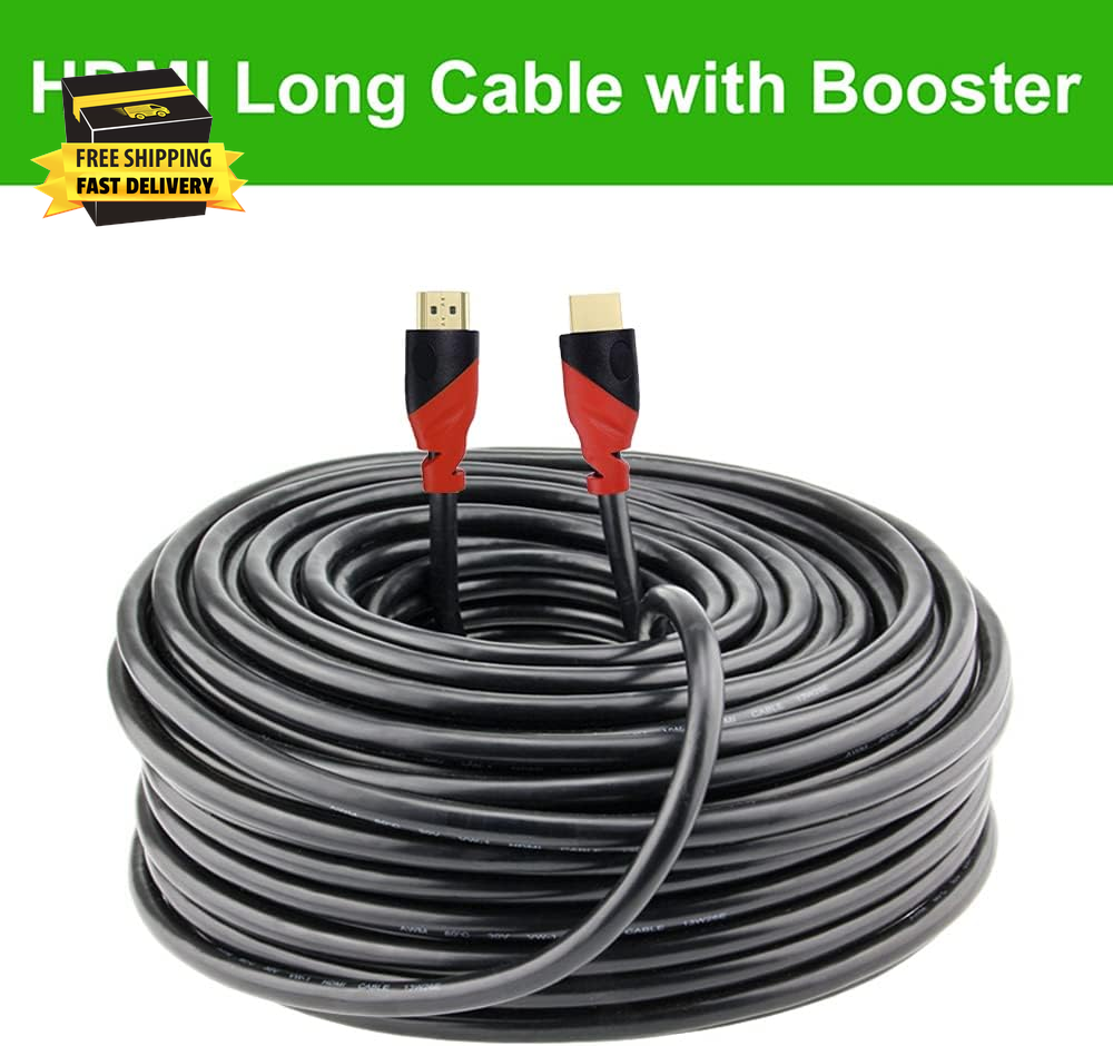 This HDMI cable is a game-changer! The 150ft length with built-in signal booster delivers crystal-clear 4K and 3D without any lag. The durable braided design works great indoors or outdoors, and the audio return channel is super convenient. Perfect for home theaters, gaming setups, or professional AV installations. No signal loss even at maximum length - highly recommend!