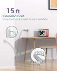 【15 FT Extra Long Extension Cord】 - This long power strip with 15ft is long enough to make it more flexible, flat plug design indoor extension cord with usb can fit easily in tight spaces, such as desk, nightstand; 45 degree right-angle create enough room makes this usb power strip flat plug does not obstruct other plugs, suitable for installing behind sofa, wardrobe, bookshelves, and other furniture 【All in One Power Strip】- 12 widely AC outlets power strips(1875W/15A Max)with 3 USB (1 USB C) charing ports, the flat extension cord is 3 side design, every outlet is separated widely enough to fit 12 big plugs without blocking each other; The compact design power strip saving more space for your home, office, and college dorm room 【3 Side Design & Widely Space】- Multi sided compact power strip with widely space fits large power adapters without blocking others, 3 USB Ports intelligently detect and charge the devices at the ideal output, like smartphone, tablet, camera, power bank, etc (USB Ports: 5V/2.4A each port, 3A in Total) 【Wall Mountable Power Strip】- Unique screw fixation design on both end allow this white power strip securely installed in various applications (4 screws included), This wall surge protector with usb can also be used as a desktop power strip or nightstand USB charging station without slipping off 【Multi Safety Protection with ON/OFF Switch】- The surge protector outlet with overload protection protects your electrical appliances from lighting, surges or spikes. This slim power strip has overload protection, short-circuit protection, over current protection, over-voltage protection and overheating protection. It will automatically cut power to protect connected devices when voltage surge is overwhelming