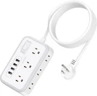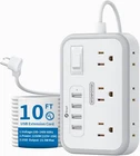 Product Description 【 Extra Long Extension Cord with Flat Plug 】This flat plug extension cord 15 feet gives you the flexibility to reach distant outlets and hard-to-reach places. A perfect solution for when power outlets are not conveniently located nearby. 45°angled plug doesn’t block the bottom receptacle. The flat plug features a low profile fits easily in tight spaces like behind furniture, bookshelves, desks. 【10-IN-1 Power Strip Surge Protector with USB Ports 】This 15 ft 2-side outlet extender with 6 outlets 4 USB charging ports(Total 5V/3.1A) can power up to 10 devices simultaneously. With built-in Smart IC technology, the multi plug extension cord with USB ports can auto-detect and deliver appropriate current to your devices phone, iPad, tablet, kindle, or lamp, WITHOUT a variety of converters. This USB power strip supports a range of 100-240V. Ideal for Home, Office, and Dorm Room essentials. 【 Two Mounting Methods & Wide Space 】 The two mounting holes(2 screws and mounting template included) allow this wall mount power strip to be installed in various applications horizontally or vertically, like workbenches, wall, counter, dorm room and more. Saving space for you. The outlets are separated enough to fit big transform plugs without blocking each other(preferably < 1.6” wide). 【 Reliable Surge Protector with Overload Protection Switch 】 The 1080 Joules surge protector power strip protects your electrical appliances from lighting, surges, or spikes. The extension cord with multiple outlets has a circuit breaker and an OFF/RESET switch that automatically shuts off to protect your equipment once power overload is detected (rated power: 1250W). A white soft indicator tells you whether the flat plug power strip is working. Safe and convenient. 15 FT Power Strip Surge Protector --- Ideal for Home, Office, Dorm Room & More Are You Still Worried That There Is Not Enough Power Outlet? We often find that there are not enough socket are available or the big plug blocked other outlets! But we and our family, friends have mobile phones, laptops, kindle and many devices that need to be charged. Our 15FT Long Extension Cord Power Strip with 6 Outlets 4 USB Charger is the solution. 1. 15 Feet long Extension Cord Outler Extender: 15 ft extension cord power strip provides flexibility and allows you to arrange your home, office, or shop site the way you need. 2. 10-IN-1 Design: Surge protector power strip is compact and ergonomically designed with 3 Type-B outlets, 3 Type-A outlets, and 4 USB ports , expanding 1 to 10. More convenient for charging phones, tablets, earbuds, laptops, lamps, and other devices simultaneously. 3. Saving Space: Flat Head Plug fits well for tight spaces like behind furniture, bookshelves, desks, or anything close to the wall. 45° Angle Plug keeps from blocking the neighboring socket. The two mounting holes(2 screws and mounting template included) , allow this mountable power strip to be installed in various applications horizontally or vertically. 4. Power Strips with Surge Protection: 1080J surge protection keeps everything running smoothly. With integrated circuit breaker , The reliable OFF/RESET switch for overload protection will shut off automatically to protect your devices and home when overloaded. Specifications: Voltage Compatibility: 100~240V AC 50/60Hz Power Rating: 1250W (125V, 10A Max) 4*USB Port Output: 5V 2.4A (Max) Automatic Recognition USB Total Output: 15.5W Max Surge Protection: 1080 Joules Indicator: White LED Light Power Cord Length: 15ft Certification: FCC,RoHS,DOE (Level VI),ETL(See Product guides and documents) PACKAGE CONTAINS: 1 x USB Power Strip 2 x Screws 1 x Cable Tie 1 x User Manual Extension Cord with Multiple Outlets and USB Ports Surge Protector Power Strip for Any Needs This long cord power strip with 6 Outlets 4 USB ports, provides power and charging for up to 10 devices from a single wall charging unit. Save your space and make your desktop organized. Widely spaced outlets (1.6 inches) could fit in 2 large adapters. 15ft extension cord with 3 prong plug meets all your charging requirements for home, office. 6 AC Outlets(3 Type B, 3 Type A) and 4 USB Ports High-Speed Charging Extra Long 15 ft Extension Cord Wide Spaced with 1.6in 1080 Joules surge protection Flame-Retardant Casing Anti-Slip Rubber Pads Wall Mounting with 2 Screws &1 Mounting Template 15FT Long Cord Power Strip Its 15 foot power cord with flat Plug easily reaches behind desks, sofas, and other home and office furniture. The longer cord makes this a lifesaver for allowing one to access places with no power nearby. Multiple Lengths Available: (5/10/15/25FT) Surge Protection with Circuit Breaker The extension cord with multiple outlets has a circuit breaker and an OFF/RESET switch that automatically shuts off to protect your equipment once power overload is detected (rated power: 1250W). Advanced built-in 1080 Joules surge protection energy rating to protect your home/office equipment from voltage fluctuations, surges, and spikes. White soft indicator tells you whether power strip is working. Safe and convenient. Multi Safety Protection for Your Devices & Home The all-around protection makes it safer to use this power strip with USB. Fire-resistance PC shell with flame retardant at 1382℉ makes it more durable and longer lifetime. Built-in Phosphor copper wire, the premium circuit has corrosion-proof, over-heat, over-current, over-charge, short circuits protection. Provides, 18-month free worry, 24h support. 4 USB Charging Ports With built-in smart IC technology, this flat plug extension cord with 4 fast-charging USB ports(3.1A/15.5W) can auto-detect and deliver an ideal input current of up to 5V/2.4A for cellphones, laptops, tablets WITHOUT a variety of converters Low Profile Flat Plug Power Strip 45° angled plug doesn’t block the bottom receptacle. The flat plug features a low profile(0.35in) fits easily in tight spaces like behind furniture, boo
