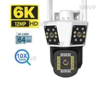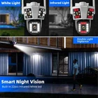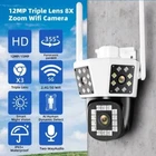 Specification: Use APP: hopeway Mega Pixels: 4MP+4MP+4MP Support 5Ghz and 2.4Ghz Wifi Motion Detection Range:10-15 meters 12MP full HD PTZ wireless network camera. Radiation distance max 15 meters Camera head are rotatable with 355°pan and 90°tilt With built-in microphone and speaker, two-way audio quality. Video Storage 2 Ways: SD card max 128G (not include, optional purchase), Cloud Storage (Not free) (Alarm Video) Reason to Buy 【5Ghz&2.4Ghz】:Support 5Ghz and 2.4Ghz wifi. 【8X Zoom】:To slide the phone screen to rotate and watch, 8X Digital zoom to see details of any part of the image. 【Duel Lens】: The security camera light bulb with 4MP+4MP+4MP super HD image, let you see the every details of the monitoring clearly. 【High Definition】:The product has a high-definition lens that captures clear and detailed footage of your security cameras, ensuring that you can identify any intruders or suspicious activity(With 8X Digital Zoom). 【Human Tracking】:The product has AI functions that enable it to track and follow human movements, making it an effective tool for monitoring your security cameras. Package st 1 x Three lens Camera (TF card not included, optional purchase) 1 x Split power supply+power cord 1 x Screw Package 1 x User Manua Features 1. 3.5-inch 12-megapixel high-definition camera; 2. Frou/three lenses, three images, ultra-wide angle + 6mm lens PTZ, to achieve clear monitoring near and far; 3. dual light source design, built-in infrared light + white light, can be set to night vision infrared and night vision full color; 4. head tilt: horizontal 0~355 degrees, vertical 0~90 degrees; 5. 2.4G or 5G WIFI + RJ45 network port, can access the Internet; 6. Support TF storage and cloud storage (one month of cloud storage for free); 7. bidirectional voice intercom, bidirectional video synchronous recording and playback; 8. human figure detection/vehicle detection/pet detection/other detection (need to open cloud storage) 9. automatic tracking/movement alarm, alarm output sound and light linkage; 10. AI intelligent algorithm, realize video 3D positioning, continuous tracking target alarm; 11. Support Android/IOS APP remote management. 12. Power supply DC 12V. Panoramic Pan & Tilt .Provide 355° Protection 8X Hybrid Zoom - 6K camera supports 10X hybrid zoom, allowing you to zoom in/out on the observed object in the app, allowing you to see more details Two-Way Talk - Talk to Your Kids From Anywhere Modernized antenna, powerful signal - Equipped with external high-gain enhanced 5dBi antenna, your camera can receive a wider range of signals. Smart Mode - The camera will automatially turn into color mode from infrared mode when suspicious motion is detected Intelligent dual light visual modes- Infrared mode & Color night vision mode - Equipped with white LEDs and high-efficiency infrared LEDs, it can provide you with colorful and high-definition image effects no matter day or night. Full-color mode Thanks to the built-in soptlights, your night vision is now turned up and in full color Infrared Mode Advanced IR algorithm provide clear black-and-white pictures even in darkness Intelligent Tracking Alarm Custom Image Detection Alarm Time Custom or 24h Support SD card & cloud service (Need to pay) - Insert a TF card up to 128 GB (TF can be selected as needed) helps you save the video you are not willing to delete Remote Monitoring - Support remote monitoring, View & Anywhere & Anytime Waterproof,anti-snow,anti-storm 12MP=4MP+4MP+4MP Cheaper and Better than 3PCS of single Cameras