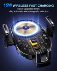 The Wireless Car Charger with 15W Fast Charging and Auto Clamping Phone Holder in black is a versatile and convenient accessory for your vehicle. This universal charger is compatible with various brands and models, featuring a clamp mounting type for easy installation on the air vent. The wireless charging standard follows the Qi protocol, ensuring efficient and seamless charging for your device. This branded unit includes one port and a holder feature to securely keep your phone in place while driving. Made of plastic in the United States, this phone charger offers a sleek and practical solution for charging on the go.