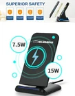 Wireless Charger, WAIWAIBEAR Wireless Phone Charger Stand, 15W Wireless Charging Stand and Google Pixel Stand for iPhone 13/12/SE/11/10/XR/XS/8 Plus, Samsung Galaxy S21/S20/S10/S9/S8, LG THREE WIRELESS CHARGING MODES: 15W Fast Charge mode compatible with SamsungS21/S20/S20+/S20 Ultra/S10 /S10+/S10E/S9/S9+/S8/S8+/S7 Edge/Note 20/20 Ultra/10/10+/9/8/5. 7.5W Fast Charge mode compatible with iPhone, iPhone 13/12/12 Pro Max/11/11 Pro/11 Pro Max/XS/XS Max/XR/X/8/8 Plus; 5W Standard Charge Model: Standard QI enabled device like Google Pixel 6, Pixel 6pro, Pixel 5, Pixel 4XL, Pixel 3/3XL, Samsung S6/S6Edge. 2 COIL WIRELESS CHARGING: The built-in 2 coils offer a wider wireless charger area and faster-charging speed, charging your phone vertically or horizontally. This Quick Charge wireless charging stand will charge your compatible device to full charge in a short amount of time. And you can watch movies, listen to music, make calls, or sending a message without interruption during the whole charging process. SAFER AND EASIER TO USE- Put It On and Charge It! The wireless phone charger stand provides overcharging and over-temperature protection never overcharges the battery or wastes energy. Besides that, with four anti-slip rubber feet at the bottom to ensure stability. INTELLIGENT LED INDICATOR- With two colors LED lights indicate charging status. Solid blue for standby mode, green for charging mode). One year warranty if you got any problems about the wireless charger you got from WAIWAIBEAR. Any problem, please contact us anytime, we will back to you in 8H. (PLEASE NOTE: This Wireless charger supports most phone cases not thick than 5mm such as armor case, rubber case, hybrid case, plastic/TPU/PC cases. PLEASE REMOVE ANY METAL AND MAGNETIC ATTACHMENTS OR CREDIT CARDS BEFORE PLACING YOUR PHONE.)