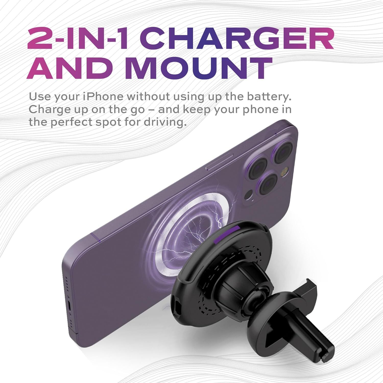 Car Phone Mount Charger 15W Wireless Car Charger and Car Vent Phone ๐-๐ข๐ง-๐ ๐๐ก๐๐ซ๐ ๐๐ซ ๐๐ง๐ ๐๐จ๐ฎ๐ง๐ญ. Dual purpose Magnetic Car Mount for Cell Phone and Wireless Car Charger. Use your carโs air vent to mount your iPhone and charge it up all at once with the wireless charging feature. Compatible with iPhones as a magnetic phone charger, and a Magnetic Ring is needed for Androids or Regular Phone cases. ๐ ๐๐ฌ๐ญ ๐๐ก๐๐ซ๐ ๐ข๐ง๐ ๐ข๐๐ก๐จ๐ง๐๐ฌ: Get the fastest wireless charging speeds available, with up to 15W of power for your iPhone. This cell phone car mount and charger is perfect for commuting, taking a road trip, or keeping your GPS on without draining your battery. ๐๐๐ง๐๐ฌ๐๐๐ฉ๐ ๐จ๐ซ ๐๐จ๐ซ๐ญ๐ซ๐๐ข๐ญ ๐๐๐๐ฉ๐ญ๐๐๐ฅ๐ ๐๐ข๐๐ฐ๐ข๐ง๐ : Turn your phone to the side for GPS, or keep it in portrait mode for music, audiobooks, calls, and more. Enjoy multiple uses with this car cell phone holder for iPhone. ๐๐๐ญ ๐ญ๐ก๐ ๐๐๐ซ๐๐๐๐ญ ๐๐ง๐ ๐ฅ๐ ๐ฐ๐ข๐ญ๐ก ๐๐๐ยฐ ๐๐จ๐ญ๐๐ญ๐ข๐จ๐ง: Effortlessly adjust and rotate the mount for the perfect angle with this cell phone holder for car, ensuring clear, safe, comfortable visibility while driving. ๐๐ง๐ข๐ฏ๐๐ซ๐ฌ๐๐ฅ ๐๐๐ซ ๐๐จ๐ฆ๐ฉ๐๐ญ๐ข๐๐ข๐ฅ๐ข๐ญ๐ฒ: Designed for portability, and to fit seamlessly with the air vents of a wide range of vehiclesโcompatible with cars, trucks, and SUVs, offering versatility for different car models. ------------------------------------------------------------------------------------------ Shipping Policy: Domestic lower 48 states shipping is free and expedited. Shipping is also free to the rest US states and US Protectorates including Puerto Rico, Alaska, Hawaii, APO/FPO, but delivery times are longer than usual. If you need your order by a specific date please contact us before you make the purchase for a delivery estimate. ------------------------------------------------------------------------------------------ Return Policy: Your satisfaction is guaranteed! If for any reason you are unhappy with your item, just return it within 30 days for a full refund. Please contact us prior to initiating a return so that we can issue you a refund authorization.