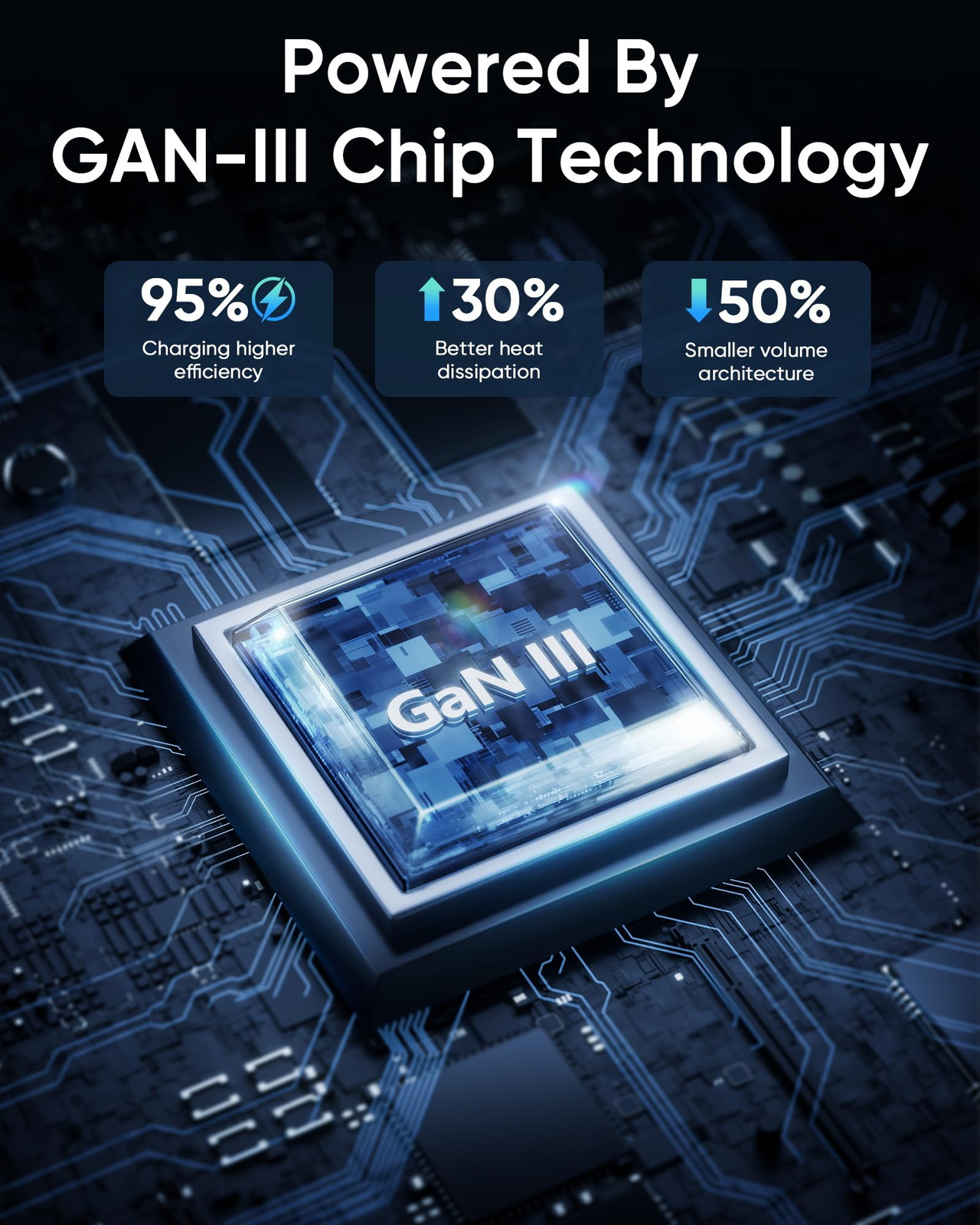 This 3-port GaN charger is a game-changer! The dual 65W USB-C ports charge my laptop and phone at lightning speed, while the 30W USB-A handles my earbuds effortlessly. It’s compact yet powerful, replacing three bulky chargers and saving precious outlet space. The latest GaN III tech ensures efficient, cool operation even at max output. Perfect for travel or home use—no more waiting around for slow charging. Highly recommend for anyone with multiple devices!