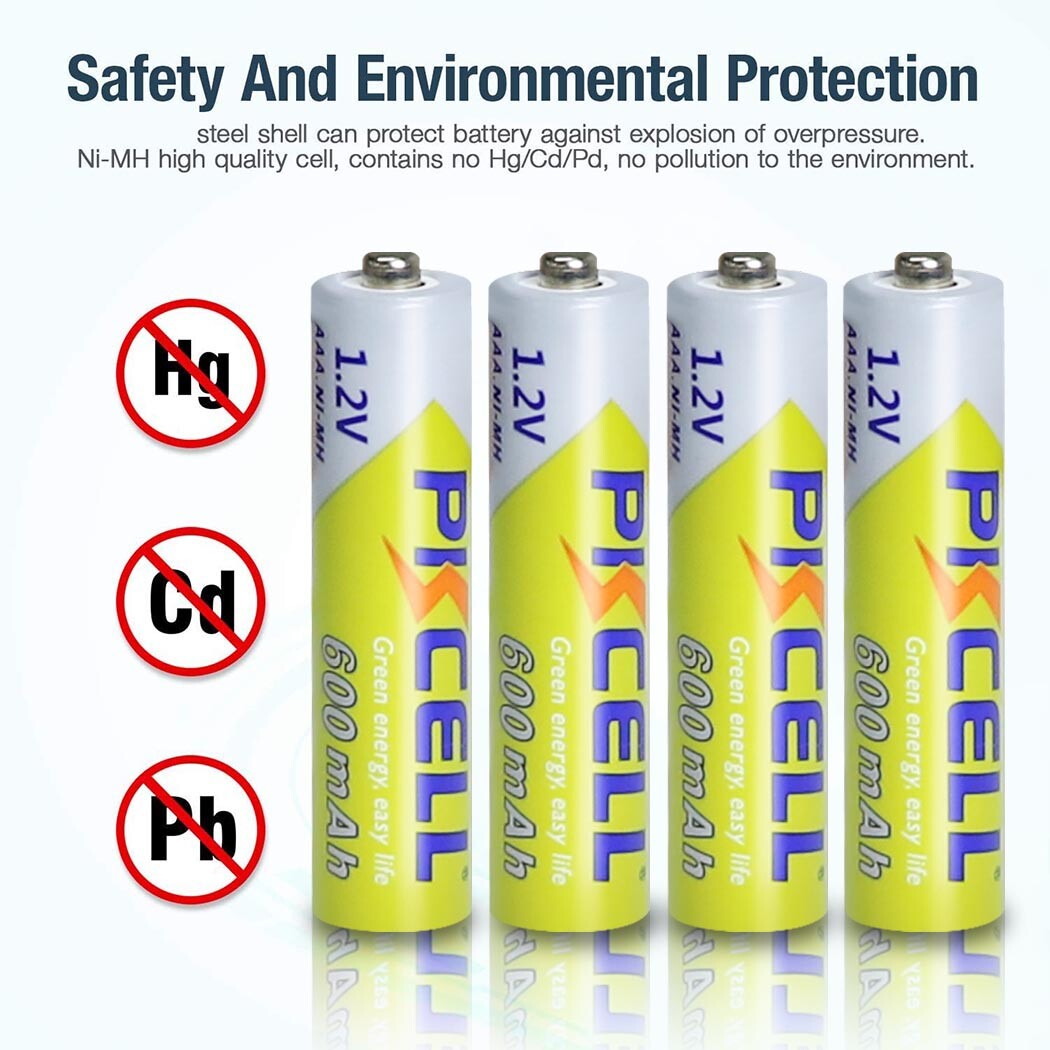 Product Features: 600mAh capacity- Suitable for most devices. No pollution to the environment- Produce less waste than disposable batteries. Rechargeable battery- Up to 1000 recharge cycles No memory effect- Longer service life than Ni-Cd batteries Superior performance- Wide range of operating temperatures(-20°C~+55°C). Wide range of applications- Digital cameras, portable video, games, flashlights, remote controls, toys, MP3/MP4 players, electric razors, etc. Product Specification: Brand: PKCELL Model: NiMh AAA Rechargeable Batteries Volt: 1.2Volt Nominal Capacity :600mAh Charging Cycles: Up to 1000 Cycles Weight:App 15g/pcs Application: Themometer 、 digital cameras, toys, remote controls,hand held games,2-way radios, PDAs, flashlights, alarm-clocks,LCD-TVs, Toothbrushes, Shavers and portable audio players Note: -Standard Charging:These rechargeable NiMH batteries can be charged via NiMH or universal charger. -Charge before using them to make them work longer. Package included: 16pcs 600mAh AAA NiMH Rechargeable Batteries
