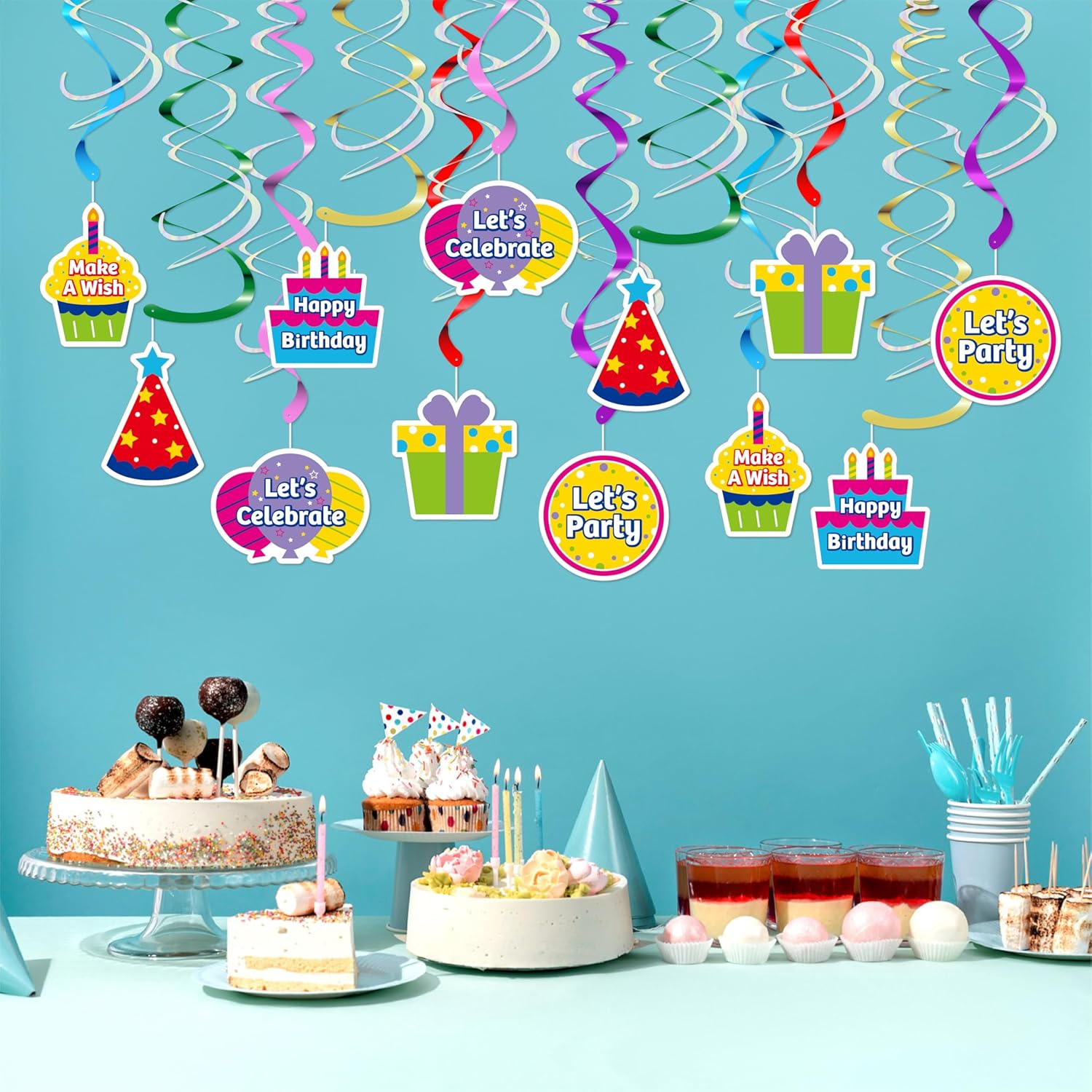 Store New Arrivals Add to Favorite View Feedback Contact Fast deliveries to the customer's home Quality customer service John Make the customers happy! 18Pcs Birthday Party Hanging Decorations - Colorful Swirl Streamers with "Happy Birthday," "Let'S Celebrate," & "Make a Wish" Signs | Perfect for Parties, Birthdays, and Celebrations Description ❤️ Vibrant and Double-Sided Design: Add a lively and colorful touch to your celebration with this 18-piece Double Swirl Hanging Decoration Set. Featuring bold double-sided prints and six charming designs, including cupcakes, gifts, and party hats, it’s a delightful way to enhance the festive atmosphere. 💛 Durable and Eye-Catching Materials: Crafted from high-quality foil and prismatic materials, these lightweight yet sturdy swirls reflect light beautifully, adding a subtle shine to your party decor. Suitable for various festive occasions. 💚 Easy to Use: Designed for convenience, the pre-assembled swirls come with included hooks, making setup straightforward. They can be hung effortlessly on ceilings, doorways, or windows, saving time and effort during your party preparations. 💙 Versatile for All Celebrations: Whether it’s a birthday, anniversary, or baby shower, these decorations complement a variety of themes. Their vibrant colors and holographic designs add a cheerful and welcoming vibe to any event. 💜 Comprehensive Party Set: This set offers 18 Double Swirls in six unique designs, with lengths up to 24.5 inches. The combination of playful prints and holographic shine makes them a fun and versatile addition to your decorations, helping create memorable moments. 🧡For Optimal Storage:Keep decorative items in a dry, well-ventilated space, away from direct sunlight. Extended exposure to excessive dryness or UV rays may lead to fading, warping, or deterioration of materials. Product description Vibrant Birthday Swirls for Every Celebration with Friends! This party set features 18 double swirls in six designs, each up to 24.5 inches, with playful prints and holographic shine for a fun and versatile decoration. Distinctive Double Spiral Design The unique double spiral design, made from premium foil and prismatic materials, reflects light beautifully, adding shine and a festive touch to your decorations. What's In the Box This set features 18 double swirls in six unique designs, with lengths up to 24.5 inches. Ready-to-Use This set comes pre-assembled, so no DIY is required. Simply unpack and enjoy instant decoration for your event. Package Dimensions 12.52 x 6.1 x 0.71 inches; 8.15 ounces ABOUT US We offer the best prices around on high quality products. Our E-store includes media such as books, movies, music and games while offering electronics, toys, sporting apparel, clothing, tools, general home, garden items and more. SHIPPING We are always working hard to ensure your package arrives as soon as possible. Please understand that some factors like weather, high postal traffic, and the performance of shipping companies are outside of our control. We offer free shipping to the lower 48 states and ship within 2 business days of payment, usually sooner. We do not accept P.O. Boxes. Please provide a physical address. For shipping outside of the continental USA, we only use eBay's Global Shipping Program. The item is shipped to KY and then sent to the rest of the world. International customers are responsible for all duties and taxes. Continue to 'check out' to calculate costs for shipping the item to your country. Messages regarding eBay's Global Shipping Program MUST be directed at eBay EXCLUSIVELY. RETURNS We offer a 30-Day Return Policy on items in which you are not completely satisfied with. You have the option of a full-refund or an exchange of the item. No returns are available on items shipped outside of the USA PAYMENT We accept PayPal. CONTACT US This page content is yet to come Please ad us to your favorite seller and visit again later Thank You CUSTOMER SATISFACTION We try our very best to make sure every customer is completely satisfied. If there's a problem, message us! We're happy to help. WE ACCEPT