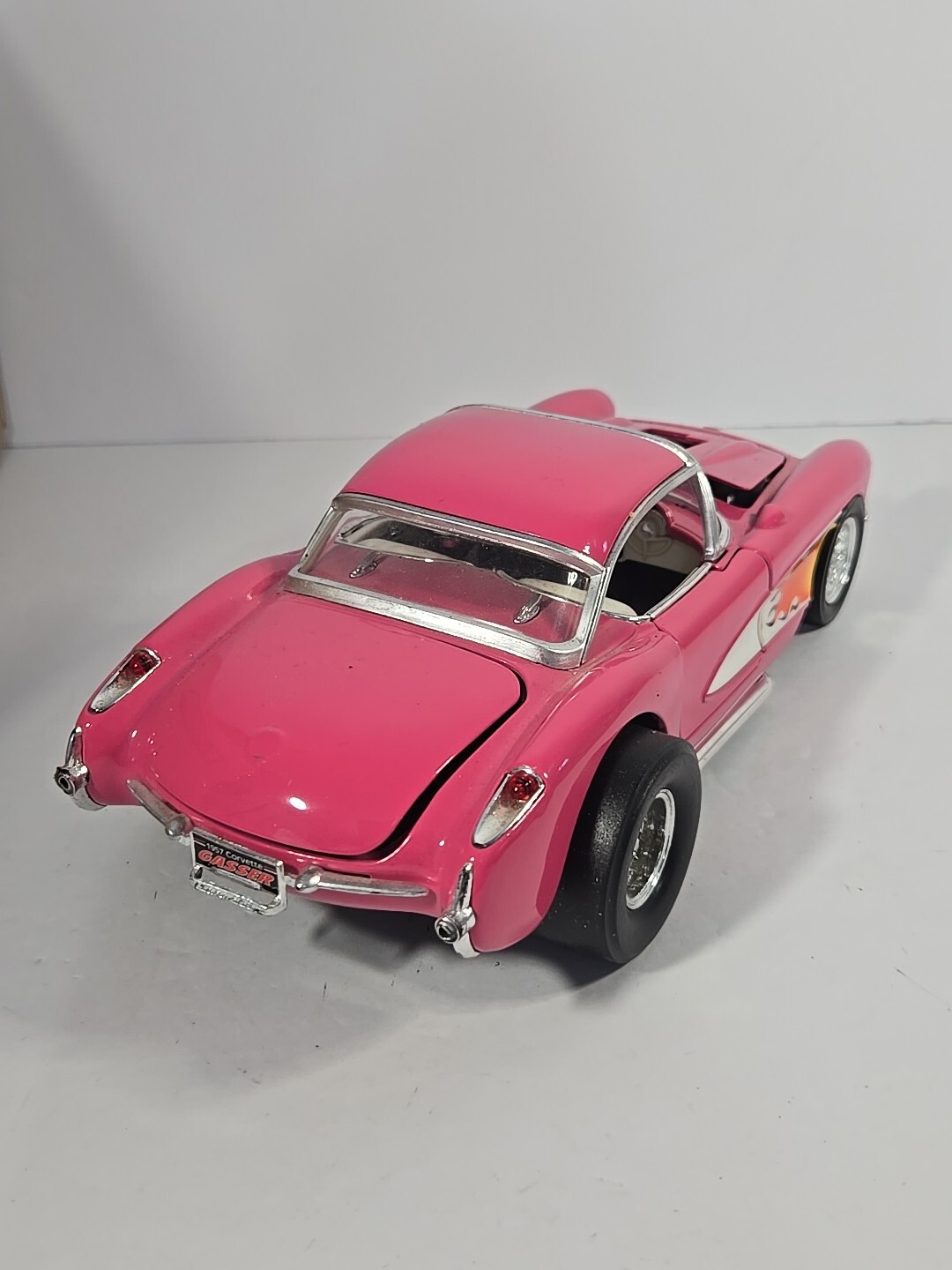 This Road Legends 1957 Pink Chevrolet Corvette Gasser is a must-have for any die-cast collector. The 1:18 scale model is beautifully crafted with intricate details that make it a perfect addition to your collection. The car is made from high-quality diecast material and features a stunning pink color that is sure to catch the eye. The Chevrolet Corvette model is a great representation of the iconic car, with accurate features and a detailed interior. This collectible is perfect for display in your home or office, and is sure to impress any car enthusiast. Add this beautiful piece to your collection today!
