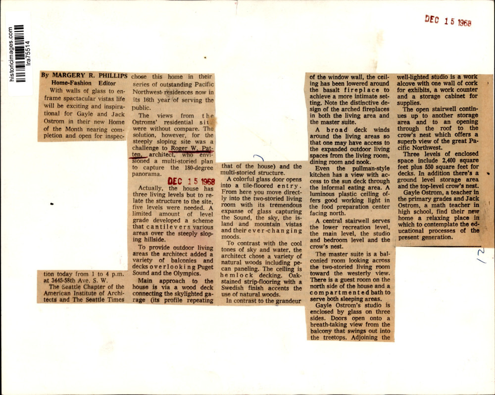 ebay template Note: Please study the images carefully to determine the condition of this vintage photograph, as it may not be in perfect condition. It may contain wrinkles, cracks, and possibly even tears due to its age and how it was handled before it got to us. A scanner may interpret colors and contrast differently than human eyes will, so it is possible that the actual photograph may be slightly darker or lighter in person. This vintage photograph is offered for sale as a collectible item and conveys no transfer of copyright. 1968 Press Photo Seattle Architect Roger W. Patten - lra75514 This is an original press photo. The Seattle Chapter of the American Institute of Architects and The Seattle Times chose this home in their series of outstanding Pacific Northwest residence now in its 16th year of serving the public. The views from the Ostroms' residential site were without compare. The solution, however, for the steeply sloping site was challenge to Roger W. Patten, architect, who envisioned a multi-storied plan to capture the 180-degree panorama.Photo measures 8 x 10inches. Photo is dated 12-15-1968. PHOTO FRONT PHOTO BACK Historic Images Part Number: lra75514 FAQs Q: Can I just download a digital version instead? A: No, we sell only vintage originals and do not make or distribute any copies, including digital ones. Q: Do you combine shipping and invoices? A: Multiple photos won on the same seller ID combine automatically through the eBay checkout process. If you encounter problems with this, send us a message via eBay messaging and we will send you an invoice. Due to eBay limitations, we cannot combine items won on our different seller IDs for a single shipping charge. Q: How quickly do you ship the items once paid? A: We ship within one business day after your payment clears. If you do not receive an "order shipped" email from us by the close of the second business day from submitting payment, please e-mail us via eBay messaging. Q: How do you make sure my photograph arrives safely? A: We package each order between two cross-corrugated pieces of cardboard to ensure that the package is as difficult to bend as possible. We then wrap each order in a plastic sheet to help protect against moisture. We want you to rest assured that we take every precaution to ensure that the photograph you receive will be in the same condition in your care as it was in ours. Q: Will the "Historic Images" watermark be on my photo when I receive it? A: No. This is a digital watermark we use to protect our images. It is not printed on the photo. Q: What are your office hours? A: eBay for us is a business, and a very fun one to be in! We are open M-F 9 to 5 (CST). Therefore, we do not return e-mails and phone calls over the weekend. We observe the following holidays: New Years Day, Memorial Day, Fourth of July, Labor Day, Thanksgiving and the day after Thanksgiving, Christmas Eve and Christmas Day. Q: Where did all these vintage photos come from? A: These original vintage photographs are from various news service and newspaper photo archives from locations around the country including: Boston, Detroit, Tampa, Chicago, Denver, Seattle, New Orleans, Milwaukee, Portland, Spokane, and more. We do not copy or reproduce any photographs -- every item is a unique vintage piece that was housed in a news archive. Q: Can I use this photograph in my book/blog/website? A: The short answer is no. There is no transfer of copyright for republication or reproduction with these photographs when you purchase them, and only photographs taken before 1923 are currently automatically in the public domain. Permission from the copyright holder, which usually can be identified from the back of each photo, must be sought to republish or reproduce the image for any purpose. Q: Do you relist items (in case I miss an auction ending)? A: Auction items that receive no bids are relisted in our store (historicimages-store on eBay) as a fixed-price item and at a higher price than the starting auction price. Q: Do you leave feedback? A: Yes, we always leave feedback for buyers. Our software monitors when our buyers leave us feedback, then notifies us that we can leave feedback for the buyer. Rest assured, if you leave feedback, we will do the same! Check out our family of eBay IDs: historicimages01 Sports Photos historicimages02 Entertainment Photos historicimages03 Americana Photos historicimages04 International & War Photos historicimages05 Transportation Photos historicimages06 Photos of All Subjects historicimages07 Entertainment Photos historicimages08 Newsworthy Photos historicimages09 Entertainment Photos historicimages10 Sports Photos historicimages-store Our largest fixed-price selection historicimages-gallery Hand-picked photos Saturday night auctions About Us Historic Images was formed in September 2009, with a handful of scanners working out of a basement to digitize newspaper photo archives. We have since moved out of the basement, and we can now archive thousands of photos per day. Our company has worked with magazines and newspapers from Detroit, Boston, Denver, Seattle, Tampa, Chicago, and New Orleans, just to name a few. We are constantly adding to our inventory, and have assembled an archive of millions of photos to date. As our company evolved, we began our eBay business, which brings thousands of fresh auctions per week to the world's largest online auction marketplace. Our custom software systems and team of great employees allow us to efficiently scan and sell large photo archives online. At the very core of our company's DNA is a strong commitment to customer satisfaction and strict integrity for our product. Our promise to you is that we will do everything in our power to provide you a great buying experience. Copyright 2009 - Present, Historic Images, Inc. Sell Smarter with Kyozou. Inventory and Ecommerce Management