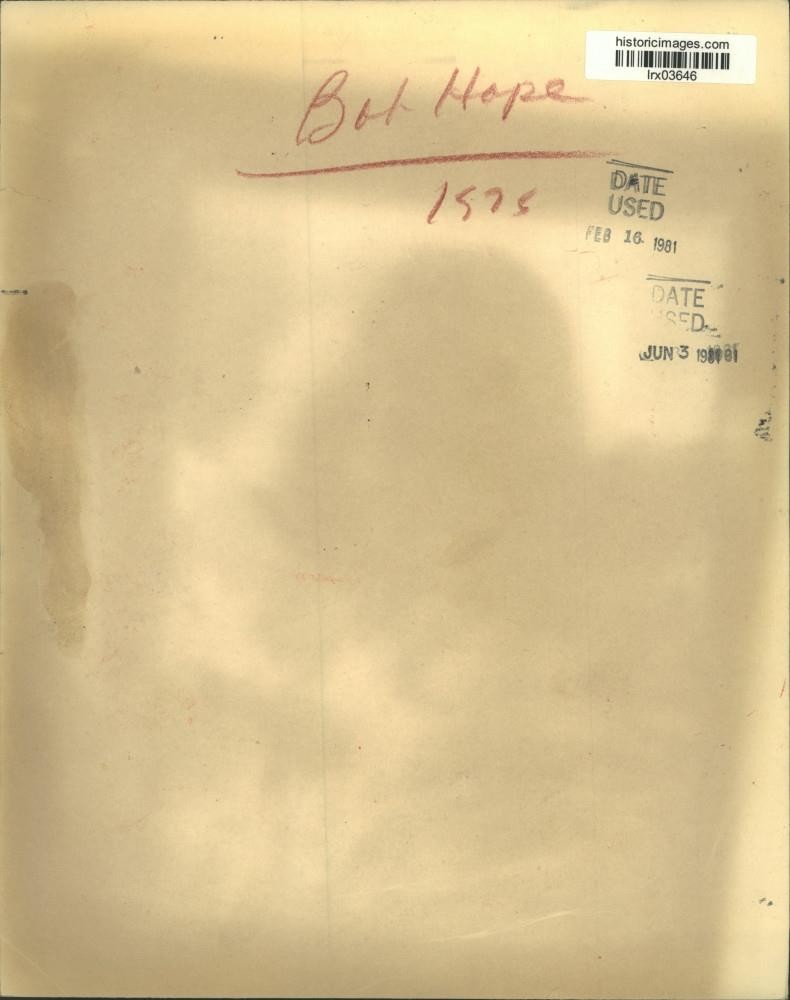 ebay template Note: Please study the images carefully to determine the condition of this vintage photograph, as it may not be in perfect condition. It may contain wrinkles, cracks, and possibly even tears due to its age and how it was handled before it got to us. A scanner may interpret colors and contrast differently than human eyes will, so it is possible that the actual photograph may be slightly darker or lighter in person. This vintage photograph is offered for sale as a collectible item and conveys no transfer of copyright. 1975 Press Photo Close up view of Bob Hope - lrx03646 This is an original press photo. Close up view of Bob Hope Photo measures 8 x 10.25 inches. Photo is dated --1975. PHOTO FRONT PHOTO BACK Historic Images Part Number: lrx03646 Sell Smarter with Kyozou. Inventory and Ecommerce Management
