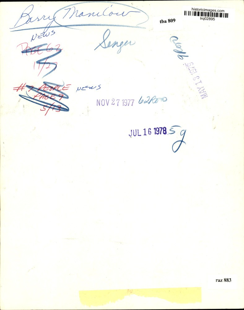 ebay template Note: Please study the images carefully to determine the condition of this vintage photograph, as it may not be in perfect condition. It may contain wrinkles, cracks, and possibly even tears due to its age and how it was handled before it got to us. A scanner may interpret colors and contrast differently than human eyes will, so it is possible that the actual photograph may be slightly darker or lighter in person. This vintage photograph is offered for sale as a collectible item and conveys no transfer of copyright. 1977 Press Photo Singer Barry Manilow - lrq02895 Singer Barry Manilow Photo measures 10 x 12.5 inches. Photo Is dated 1977. PHOTO FRONT PHOTO BACK Historic Images Part Number: lrq02895 Sell Smarter with Kyozou. Inventory and Ecommerce Management