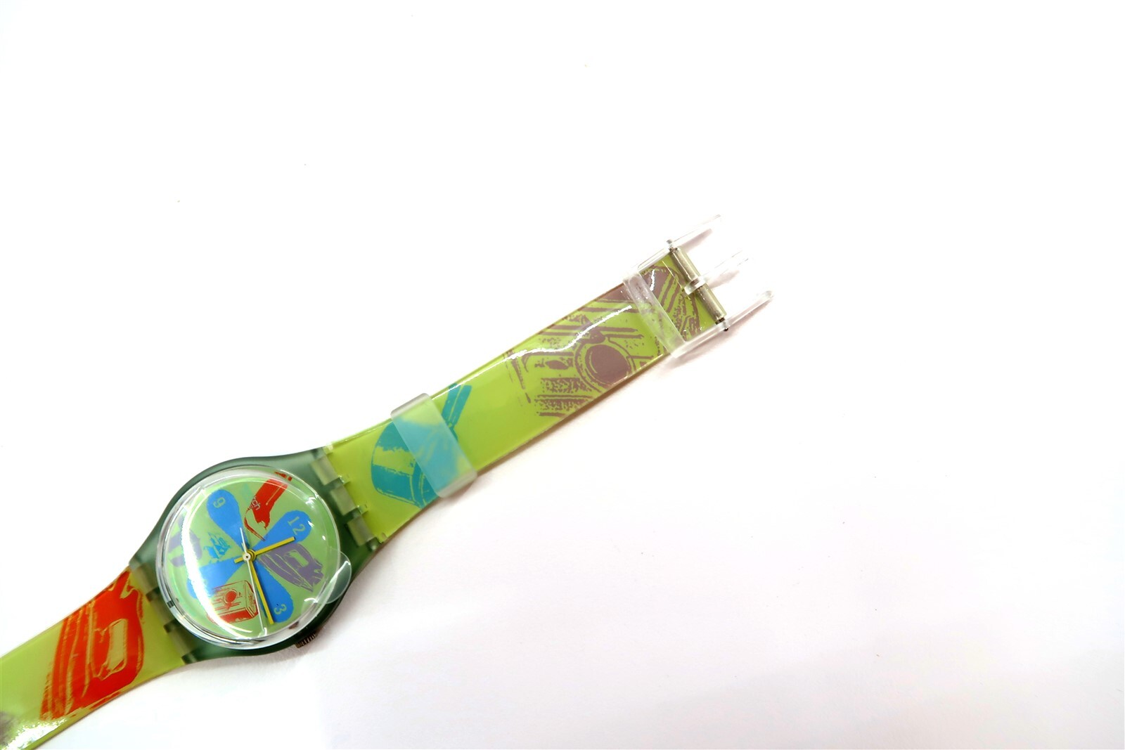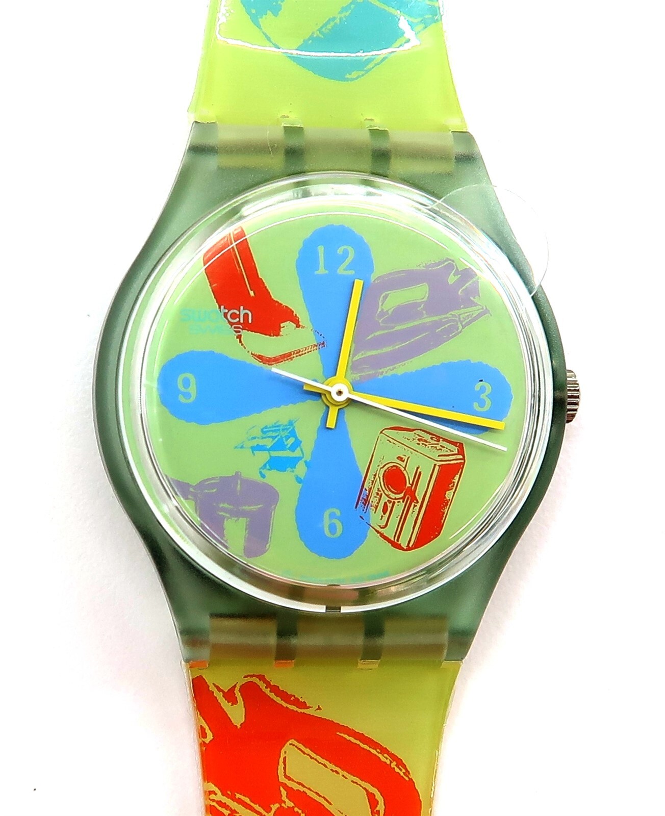NEW Swatch Watch WINDMEAL GG145 Artist Huntley Muir w/ Case, Print, Papers 1997 This eBay listing is for a New Old Stock classic SWATCH WATCH that comes as you see pictured in the listing and noted above. This watch is brand new and never used before and comes with the original case and paperwork. If you collect classic Swatch Watches, then please check out my other listings in my ebay store for many more great Swatches!! I just picked up close to 800 NOS Swatches from a local auction where I'm told the consignor had one of the largest Swatch watch collection in the United States. This was their 3rd and final auction of Swatches. In total, I purchased close to 1500+ Swatches!! Many of the watches are Special Editions, Limited Editions, Boxed Sets, Scarce and rare models plus other vintage Swatches as well. I will remove all of the old Swatch batteries and will replaced them with brand new batteries to verify that they are all are all in good working condition unless noted below. Please note that vintage and retro Swatches are on the smaller size compared to modern style watches. Most standard Gents (mens) watches have a 33mm-34mm case. I will try to include a picture with each new listing showing the watch next to a standard ruler so that you can see the true size of this collectible Swatch watch. Swatch name : WINDMEAL ~ Limited Edition Artist Special Designer watch by Huntley Muir with Print included!! Model : GG145 New Battery : Yes (due to age, the original battery was removed with a new battery installed) Features/Notes : Works Great! Circa 1997. Seller Location Reference - Box 68A BID IN CONFIDENCE – CHECK MY FEEDBACK! My goal is your satisfaction. I leave positive feedback right after the payment is received for all orders!! If you plan to leave anything less than positive feedback and 5 stars - please let me know so that I can work out any problems that you may have. I aim to please!! SHIPPING & HANDLING FOR US BIDDERS We ship ASAP upon payment as noted above within 1 business day 99% of the time!! We normally pack up your new treasures 2 - 3 times a day and ship using USPS and Fedex Ground so that you get your items in a timely fashion. As always - there is no charge for local pickup on any of my items!! SHIPPING AND HANDLING FOR INTERNATIONAL BIDDERS Import duties, taxes and charges are not included in the item price or shipping charges. These charges are the buyer’s responsibility. Please check with your country’s customs office to determine what these additional costs will be prior to bidding/buying.” THANK YOU AND HAVE A WONDERFUL DAY!! Powered by SixBit's eCommerce Solution