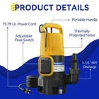$ 163.151HP 3700GPH Submersible Sump Pump with Auto Float Switch and Sealed Design