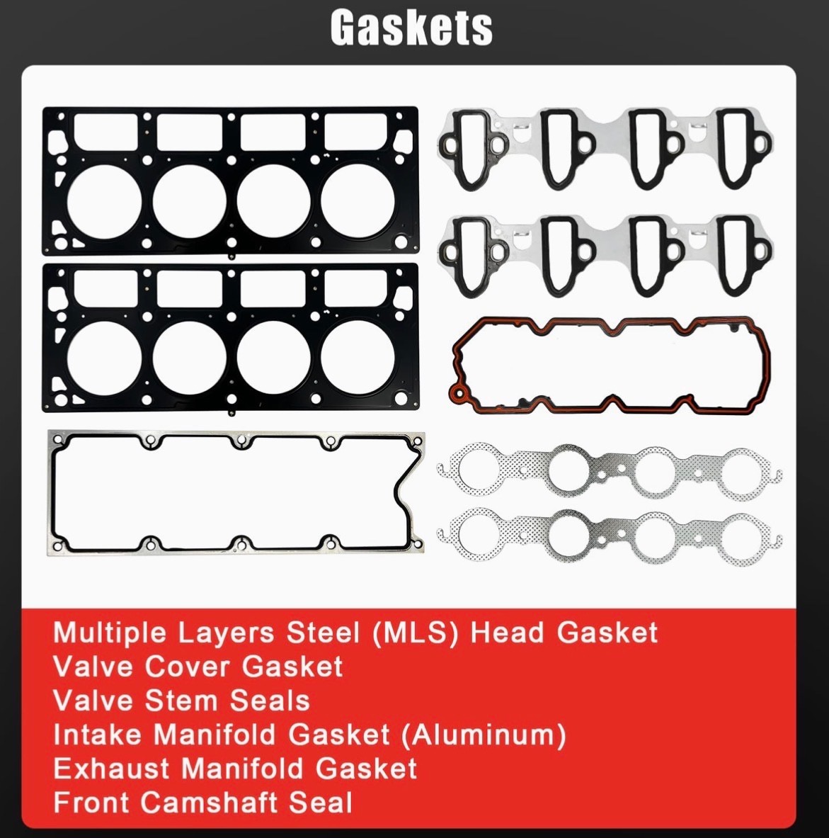 #3238 ArbDicco 5.3 AFM DOD Lifters Replacement Kit Head Gasket Set Compatible with GMC Chevy 2005-2013 Silverado 1500 Tahoe Suburban Yukon Sierra 1500 Envoy 5.3L, HS26191PT AFM10448 Fitment -- Compatible with Chevy Avalanche 2007-2013, Suburban 1500 2007-2014, Silverado 1500 2005-2013, Silverado 1500 Classic 2007, Tahoe 2007-2014, Trailblazer 2005-2008, 5.3L V8. Fitment -- Compatible with GMC Envoy Xl 2005-2006, Envoy Xuv 2005, Envoy 2005-2009, Sierra 2010-2013, Sierra 1500 2005-2013, Sierra 1500 Classic 2007, Yukon 2008-2014, Yukon Xl 1500 2007-2014; Fit for Buick Rainier 2005-2007, Fit for Isuzu Ascender 2005-2006, Fit for Saab 9-7x 2005-2009, 5.3L V8. OE Part Number -- AFM10448, HS26191PT, HS26191PT-1, ES72220, ES72390, 12619820, 12632143, 12639516, 12648846, 17122490, 05234670, 12564012, 12569256, 12571595, 12645725, 12576400. Package Inludes -- Multiple layers steel (MLS) head gasket, valve cover gasket, valve stem seals, intake manifold gasket, ex-haust manifold gasket, front camshaft seal, o-rings, other small gaskets, 30 cylinder head bolts (20 long bolts: 100mm, 10 small bolts: 45mm), 8 AFM hydraulic roller lifters, 8 NON-AFM hydraulic roller lifters, 4 AFM lifter tray w/ bolts. Specifications -- Type: Hydraulic Roller, Intake Duration @ .050": 196, Ex-haust Duration @ .050": 201, Valve Lift Int (in.): .481", Valve Lift Exh (in.): .481", Rocker Ratio: 1.7, Lobe Seperation: 116. Buy with Confidence -- We offer a 12-month return and refund policy. If there are any quality problem, please feel free to contact us, we will respond within 24 hours and provide you with some advice or replace new parts.