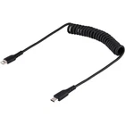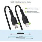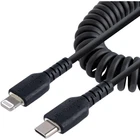 USB C TO LIGHTNING CABLE 1M (3FT), MFI CERTIFIED, COILED IPHONE CHARGER CABLE, D USB-C TO LIGHTNING CABLE: Coiled cable stretches up to 3.3ft (1m) and contracts to 1.2ft (38cm) preventing it from being tangled; Strong but soft flexible TPE jacket, makes it easy to coil and put away in vehicle console or glove compartment RUGGED DESIGN: High Quality USB C 2.0 cable reinforced with aramid fiber for increased tensile strength; Tested to withstand 10000+ insertions & 5000+ bend cycles at 180° Durable TPE jacket and strain relief; TPE is non-toxic, halogen free APPLE MFI CERTIFIED: USB type C to Lightning adapter cable for guaranteed fast & reliable charge/sync from USB-C charger port for Lightning devices including iPhone 13/12 Pro/Max/Mini, iPhone 8/11/11 Pro, iPhone XR, iPad Air, iPad, iPad Mini CHARGE LIGHTNING DEVICES: Coiled heavy duty cord charges devices with a Lightning port, includes AirPods, Magic Keyboard, Magic Trackpad, Magic Mouse & Siri Remote, ideal for use in Charging Stations CABLE SPECS: Length: 3.3 ft. (1 m) | Color: Black | Cable Type: Coiled |Connectors: Lightning & USB C | Performance: USB 2.0 480Mbps | Reinforcement: Aramid Fiber | Jacket Type: TPE | Shield: Al-Mylar | Heavy Duty iPhone Charging Cable