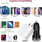 2 3.3Ft USB-C to Lightning cable + 20W Wall Charger Bloc + Car Charger for iPhone 14/13/12/Pro/Max/Mini/11/Xs Max/Xr/X, Ipad Pro/Air ⚡【20W iPhone Fast Charger USB C Kit】 - Equipped with 20W Power Delivery 3.0 fast charging port, this combo kit of iPhone 14 Pro Max charger block and car adapter is tailor-made for fast charging the latest iPhones(iPhone 8 and later). Charge your iPhone 14 up to 55% capacity within just 30 minutes, which is 3X faster than a standard 5W charger.(Compatible fast charging models: iPhone 14 Pro Max/14 Plus/13 Pro Max/13 Pro/13 Mini/13/12 Pro Max/12 Pro/12 Mini/12/11 Pro Max/11 Pro/11/XR/XS/SE 2020) ⚡【Fast Charge Two Apple Devices Simultaneously】- 20W iPhone 14 Car Charger equips two independent fast charging ports, can totally deliver 32W max power one time from two ports(20W max on PD port, 12W max on traditional USB port). Allows you to super fast charge a latest iPhone 14 Pro Max/14 Plus/13/12/11 model at 20W and rapidly charge an older iPhone/iPad at 12W simultaneously, no need to sacrifice charging speed on a road trip. ⚡【Apple MFi-Certified Lightning Cable】- Included 2 PACK USB C to Lightning Cables braided with strong nylon material, can withstand 12,000+ bend lifespan test, which is 5x more durable than other TPE material cables, Built-in original MFi chip ensures flawless compatibility with Apple devices, automatically match the current required by devices and fast charge your iPhone/iPad/iPod devices without trigger warning messages. ⚡【Applicable Apple Devices】- This new iPhone 14 charger kit is designed to work flawlessly with Apple devices like iPhone, iPad, iPod, Airpods etc...[20W PD Fast Charge] - iPhone 14 Pro Max/14 Plus/14/13 Pro Max/13 Pro/13 Mini/13/iPhone 12 Pro Max/12 Pro/12 Mini/12/11 Pro Max/11 Pro/11/XS Max/XS/XR/X/SE 2020/8 Plus/8, iPad Pro 10.5"(2017) / iPad Pro 12.9" (2017) / iPad Air 3 (2019) / iPad mini 5 (2019) / iPad; [12W Apple Fast Charge] - iPhone 7/7 Plus/ 6/6 Plus/6s/6s Plus/5s, iPod, Airpods 2/1. ❤️We Care For You❤️ - VELOGK’s combo kit of 20W fast lightning charger block and car adapter with built-in multi-protect system to protect your device against over-charging, over-heating and short circuit, ultra safe to use. (Package contents: 1x 20W iPhone 13 Charger Block, 1x iPhone 13 Car Charger, 2x 3.3ft iPhone fast charging cords, backed up by our worry-free 12-month warranty and 24/7 friendly customer service.) Product Description 20 Watt iPhone Fast Charger USB C Kit Designed for Newest iPhone 14/13/12/11/Pro/Pro Max/Mini Series Powered by latest Power Delivery 3.0, this 20W Type C iPhone Charger kit can provide your newest iPhone 14/13 series with as much power as needed. Combination of iPhone fast wall charger and car adapter is customized for your iPhones to be charged at maximum speed no matter at home/office or in the car. Never worry about dead battery level when you need your iPhone. Product Features: Simultaneously fast charge two devices on the road so no need to sacrifice charging speed for your new iPhone 14/13 even in your car. Compact 20W iPhone 13 cube meets all your iPhone’s fast charging needs, and meanwhile, provides maximum portability for travel or business trip. Attached 2PACK Nylon-Braided USB C to Lightning Cords, much more durable and flexible; Original certified chip ensures safe, fast and steady charge with no warning message popping up. Optimized to work flawlessly with almost apple devices like iPhones, iPads, iPods, Airpods, Apple watch etc... Full-Speed Charge On The Road iPhone 14 pro max car charger outputs maximum power up to 32W via 2 independent fast charging ports , allows you to charge your iPhone at full speed while supplying enough power to the second device simultaneously. 5x More Durable iPhone Charging Cables Accompanied with 2 pack [MFi Certified] lightning charging and syncing cables, works flawlessly with your iPhone and charges safely, quickly and steadily with nearly zero error messages. Compared to standard TPE cables, Zinc alloy connectors and sturdy braided nylon coating give our iPhone cable 5x more durability and flexibility, makes it withstand heavy use in everyday life and extend its lifespan Superior Safety Certified by UL/CE/ROHS, built-in multi-protection system protects the outlet charger and car adapter against over-voltage, over-charging, over-heating and short-circuiting to thoroughly ensure the safety of you and your devices. Compatible Devices (Not a full list): iPhone Series for iPhone 14 Pro Max/14 Pro/14 Plus/14 for iPhone 13 Pro Max/13 Pro/13 Mini/13 for iPhone 12 Pro Max/12 Pro/12 Mini/12 for iPhone 11 Pro Max/11 Pro/11 for iPhone XS Max/XS/XR/X/SE 2020/8 Plus/8 for iPhone 7/7 Plus/ 6/6 Plus/6s/6s Plus/5s iPad Series for iPad Pro 10.5"(2017) / iPad Pro 12.9" (2017) for iPad Air 3 (2019), iPad mini 5 (2019) for iPad 2019 and older models. Other Apple Devices for Airpods Pro 1/2, Apple Watch, iPod etc... Package Contents: 1 x 20W iPhone 14 Charger Block, 1 x 32W iPhone 14 Car Charger, 2 x 3.3ft iPhone Fast Charging Cords, 1 x Welcome Guide