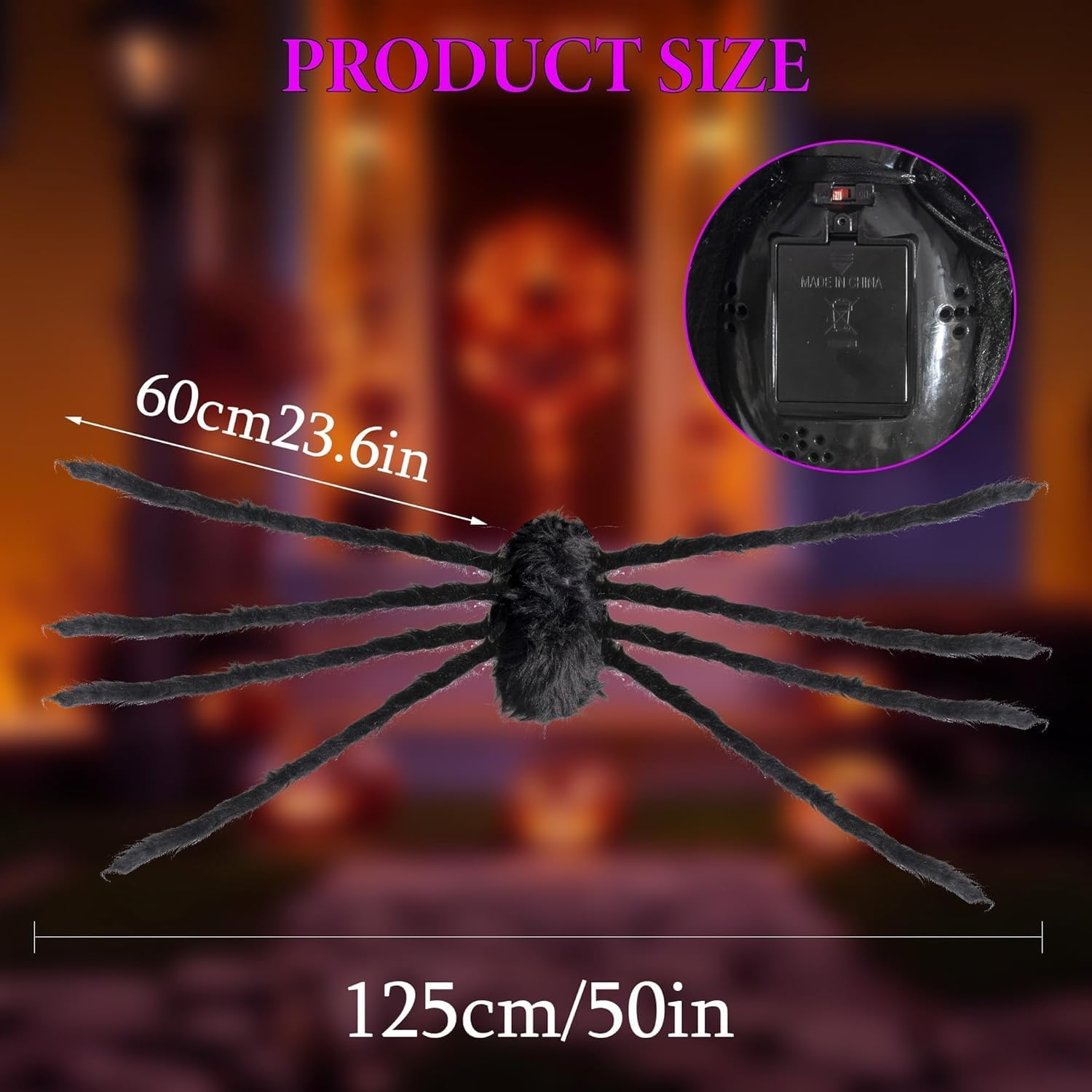 Store New Arrivals Add to Favorite View Feedback Contact Fast deliveries to the customer's home Quality customer service John Make the customers happy! 2 Pack 4.2Ft Halloween Giant Spider,Light up Spider with 24 Purple and Orange Lights,Light up Halloween Decorations Outside,For Yard Haunted House Window Party Porch Indoor outside Decor Description light up Spider : Package includes 2 pcs light up spiders(50") ,Plush black spider with 24 purple and orange lights, scary purple eyes & a hairy body High quality made, Reusable : Our spider using non-itchy plush with metal wire, it makes a softer sense of touch and high quality for durable and reusable Easy to Bend,Durable : The long legs are higly bendable and easy to pose. The legs of these Halloween props spiders can be flexibly bent into any postures you like, and they can also be folded Perfect decoration : Giant light up spider set decor for Halloween decorations outdoor, indoor, front porch, a yard or wall, lawn, haunted house, bar, tree, windows, spooky carnival, costume party Exceptional Care : If you have any questions about Halloween skeleton Decorations, please feel free to contact us Product Description Packing: 2 pcs 50 inch light up spiders Giant glowing spider has purple eyes, purple and orange legs Powered by 3 AA batteries (not included) UNIQUE DESIGN& DESIGN QUALITY MATERIAL &DURABLE Features&EASY INSTALLATION SCARY SPOOKY & HALLOWEEN PARTY DECOR Glowing Eyes Giant Halloween glowing spider's eyes glow with a dazzling purple light Purple and Yellow LED The legs of the giant Halloween glowing spider are made up of purple and orange LED lights Moving Arms Made of deformable metal frame, can be bent or upright as needed, and when stored, only need to fold all the spider legs compactly, does not take up any storage space. Item model number 12 Item dimensions L x W x H 10 x 7 x 6 inches Color color orange Product Dimensions 10 x 7 x 6 inches Item Weight 1.48 pounds Theme Halloween Size 2 Pack 4.2FT ABOUT US We offer the best prices around on high quality products. Our E-store includes media such as books, movies, music and games while offering electronics, toys, sporting apparel, clothing, tools, general home, garden items and more. SHIPPING We are always working hard to ensure your package arrives as soon as possible. Please understand that some factors like weather, high postal traffic, and the performance of shipping companies are outside of our control. We offer free shipping to the lower 48 states and ship within 2 business days of payment, usually sooner. We do not accept P.O. Boxes. Please provide a physical address. For shipping outside of the continental USA, we only use eBay's Global Shipping Program. The item is shipped to KY and then sent to the rest of the world. International customers are responsible for all duties and taxes. Continue to 'check out' to calculate costs for shipping the item to your country. Messages regarding eBay's Global Shipping Program MUST be directed at eBay EXCLUSIVELY. RETURNS We offer a 30-Day Return Policy on items in which you are not completely satisfied with. You have the option of a full-refund or an exchange of the item. No returns are available on items shipped outside of the USA PAYMENT We accept PayPal. CONTACT US This page content is yet to come Please ad us to your favorite seller and visit again later Thank You CUSTOMER SATISFACTION We try our very best to make sure every customer is completely satisfied. If there's a problem, message us! We're happy to help. WE ACCEPT