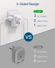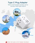 6 in 1 EU Power Adapter】- The European travel plug adapter turns 1 European Type C outlet into 3 standard American outlets, 2 USB-A and 1 USB-C charging port, Max Capacity Up to 2500 Watt (max 250 Volt, 10 A); 3 USB Ports can charge up to 3.1A, allowing you charge 6 devices simultaneously. ideal for cell phone, tablet, power bank and other electrical chargers; No need to carry extra adapter and power strip for your traveling, a small US to Europe plug adapter can save your suitcase space 【US to Europe Travel Plug Adapter】- Our italy travel plug adapter compatible with most European countries such as Austria, Belgium, Croatia, Denmark, Finland, France, Germany, Spain, Turkey, Iceland, Italy, Israel. More country list can be checked in description. ( NOTE: NOT WORK in UK/Ireland/Scotland) 【USB C Fast Charge 】- The plug extender total output of 3 USB ports is 5V/3.1A. Built in smart technology, the multi plug outlet can auto-detect charged devices and deliver optimum charging speed up to 5V/2.4A (max) each port, USB-C up to 3A.( Please note The UCB-C port is not Quick Charger 3.0, doesn't support any other devices which need 9~22V charging voltage.) 【European Travel Essentials】- This International power adapter is mini size: 3.0*2.4*1.6in, it's easy to carry and use. Indicator can let you know the power of this European travel plug adapter is on/off 【Note】- This is not a voltage converter; This power adapter US to Europe is only compatible for 100V to 250V wide voltage device, especially your hair dryer, straightener, electric toothbrush or razor need to support 100V to 250V dual voltage, otherwise you may need a power voltage converter