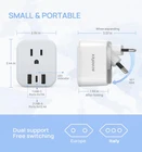 Store New Arrivals Add to Favorite View Feedback Contact 2 Pack Foldable European Travel Plug Adapter with 3 USB (1 USB-C Port) and 1 AC Power Outlet Charger for US to Most of Europe France Germany Spain and Italy (Type C/L) Description Item dimensions L x W x H 1.65 x 2.04 x 2.44 inches Item Dimensions 1.65 x 2.04 x 2.44 inches Color White Plug Type Type C, Type L 2 in 1 Model Number SL-507 Output Voltage 5 Volts Input Voltage 250 Volts Retractable 2-in-1 Plug with Prongs:Type C switchable Type L Compatible in most Europe countries such as Austria, Belgium, Croatia, Denmark, Finland, France, Germany, Greece, Iceland, Poland, Portugal, Spain, Turkey, Italy, Chile, Maldives and more others countries. Tips:It does NOT work in UK/Ireland/South Africa/Scotland. Foldable Compact Storage Design:This mini-Italy travel plug adapter can be folded 90-degrees into the unit for better prong protection and easier portability so you can save space in your suitcase. It is suitable for any places such as hotels, offices, homes. It will be an excellent choice during your European and Italian business or travel trips. 4 in 1 US to Europe Plug Adapter: This international plug adaptor has 2 USB A (can charge up to 2.4A)and 1 USB C charging ports(can charge up to 3A), 1 AC Outlets max capacity up to 2500 watt (max 250 Volt, 10 A). It is ideal for phones, iPads, Laptops, power banks, cameras etc. It allows you to charge multiple devices simultaneously without blocking. Safe & Reliable Europe Travel Accessory:The SCOOFEX European travel plug adapter is certified by CE/EMC/ROHS/FCC. The built-in safety shutters protect the user from touching the live parts on the socket outlet. When our Italy power adapter is plugged into the wall socket,Indicator can let you know the Europe power adapter is on/off. Note for this Item: This is NOT a voltage converter. This type C/L adapter only supports 100V to 250V wide voltage devices, especially your hair dryer, curling iron or shaver, you need to make sure these devices support 100V to 250V dual voltage, otherwise you may need a voltage converter. Hassle-free after-sales service, if there is any problem with the adapter, please and we will fix the problem for free within 24 hours or send you a new by default (1 year limited). Product Description SCOOFEX European Travel Plug Adapter Open the folded EU pin (Type C) Compatible Countries : Algeria / Armenia / Austria / Azerbaijan / Azores / Balearic Islands / Belarus / Belgium / Bosnia & Herzegovina / Bulgaria / Cape Verde Islands / Chad / China / Croatia / Czech Republic / Denmark / Egypt / Estonia / Finland / France / Georgia / Germany / Greece / Hungary / Iceland / Iran / Iraq / Italy / Jordan / Kazakhstan / Kuwait / Kyrgyzstan / Latvia / Lebanon / Lithuania / Luxembourg / Macedonia / Madeira / Moldova / Monaco / Montenegro / Mozambique / Netherlands / Norway / Poland / Portugal / Republic of Guinea / Romania / Russia / Serbia / Slovakia / Slovenia / Spain / Sweden / Switzerland / Tajikistan / Turkmenistan / Ukraine / Uzbekistan Push the button up gently and transfer to the Italian pin (Type L) Compatible Countries: Italy / Chile / Cuba / Eritrea / Ethiopia / Lybia / Maldives / San Marino / Syria / Uruguay / Vatican City Tips: This electric adapter does NOT work in the UK / Ireland/ South Africa/ Scotland. Product Specification Input voltage: 100V-250V,MAX 50/60Hz Max load: 10A Power rating: 2500W (Max 250V, 10A) USB A ports output: 5V/2.4A USB C ports output: 5V/3A USB total output: 5V/3.1A (Total) 4 in 1 Foldable Travel Plug Adapter It can be folded into the unit at 90-degrees to better protect the pins from being bent, and is more compact and convenient, Suitable for any places such as hotels, bedrooms, dormitories, ships, etc. Certified by CE and FCC to ensure high quality. Ultra-lightweight and compact plug Dimension: 2.44 x 2.04 x 1.65-inch Weight:3.14oz This adapter is very small and compact so that you can take it anywhere and the plug will not scratch the digital devices and screen after folding in the bag. It is a great choice for your travel and business trip. NOT a Voltage Converter Note: This Europe plug adapter is not a voltage converter. It only supports 100V to 250V wide voltage devices, especially your hair dryer, curling iron, shaver or electric toothbrush, you need to make sure they support 100V to 250V dual voltage. If your device is only 110V or 125V, what you probably need is a voltage converter. The Best Travel Accessory Gifts for Travel Enthusiasts Best charging solution for your wonderful trip This adapter with 3 USB (1 USB C Port) and 1 AC Outlets can charge four devices at the same time, suitable for electronic products such as mobile phones, tablets, laptops, power banks, etc. when traveling, there is no need to carry additional chargers. ABOUT US We offer the best prices around on high quality products. Our E-store includes media such as books, movies, music and games while offering electronics, toys, sporting apparel, clothing, tools, general home, garden items and more. SHIPPING We are always working hard to ensure your package arrives as soon as possible. Please understand that some factors like weather, high postal traffic, and the performance of shipping companies are outside of our control. We offer free shipping to the lower 48 states and ship within 2 business days of payment, usually sooner. We do not accept P.O. Boxes. Please provide a physical address. For shipping outside of the continental USA, we only use eBay's Global Shipping Program.The item is shipped to KY and then sent to the rest of the world. International customers are responsible for all duties and taxes. Continue to check out in order to calculate costs for shipping the item to your country. Messages regarding eBay's Global Shipping Program MUST be directed at eBay EXCLUSIVELY. RETURNS We offer a 30-Day Return Policy on items which you are not completely satisfied with. You have the option for a full-refund or an exchange