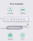 【Surge Protector Power Strip】- This slim power strip features 6 AC (13A/1625W) outlets 2 smart USB charging ports (5V/2.4A in total), 900-joule surge protection. Auto-adjust charging rate for iPhones, iPad, laptops, digital cameras, computers, TV, and more electronic devices. 【Overload Protection】- Surge protector with overload protection protects against spikes and fluctuations. The minimum energy-absorbing capacity of 900 Joules. Lighted on/off switch with an integrated circuit breaker for overload protection of all outlets. 【UL Approved Heavy Duty Power Cord】- 12 Ft pure copper braided extension cord (14 AWG 13A). The braided design makes it tangle-Free, improves flexibility, conductivity, durability, and reduces heat build-up. Fire-resistance PC shell, the fireproof shell can withstand temperatures up to 1382°F (750°C). 【45° Flat Plug & Wall Mountable】- 45°flat plug allows furniture to be pushed against the wall. Designed with 4 keyhole mounting slots on the base, allowing you to mount your power strip to the wall or desk to create a stable place to power up all of your devices. 【8 IN 1 Power Strip】- This surge protector with 6 widely outlets and 2 usb charging ports can power up 8 devices simultaneously; Widely spaced outlets are separated enough to fit big adapters without blocking each other.