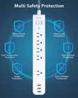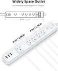 2 Pack Power Strip Surge Protector - 5 Widely Spaced Outlets 3 5 FT, Black Product Details Brand: Addtam Color: Black Total Power Outlets: 5 Voltage: 125 Volts Special Feature: Durable, Heat Resistant 【8 IN 1 Power Strip】 - This surge protector with 5 widely outlets (1875W/15A) and 3 usb charging ports(Total 5V/3.1A) can power up 8 electrical devices simultaneously; Widely spaced outlets are separated enough to fit big adapters without blocking each other;is ideal for computer, TV and other household electrical devices 【Power Strip with USB】 - This surge protector with 3 USB charging ports provide 3.1A/15.5W in total. Built-in smart charging technology that detects and deliver an ideal input current of up to 5V/2.4A (the actual current is decided by the demand for the devices) 【 5 Surge Protector Outlet 】- With 3 complementary Surge Protection Circuits, TVS(transient voltage suppressor) MOV(metal oxide varistor) GDT(gas discharge tube), can absorb capacity of 900 Joules. It's more quickly and reliably than the traditional surge protector circuit, can protect your tv, computer from voltage fluctuations, surges and spikes("SURGE PROTECTED" indicator light on to show your devices are protected) 【 Overload Protection】 - Intelligent circuitry with built-in voltage sensing detects current power, When the rated power is exceeded, the switch will automatically shutoff to keeps your device safe. 1382℉ fire-resistance PC shell, high-quality components also can prevent your devices from over-current/over-charge/over-heated 【5Ft Upgrded Extension Cord & Wall Mountable】 - The 5ft-long extension cord is made of 14AWG pure copper, which is very thick and has better current carrying capacity (15A). The braided power cord is not easy to deform, durbale and more safety than other power cord. The 45°flat plug will not block the bottom receptacle of your duplex wall outlet. Two holes on back allow you install the power strip on wall, workshop, make your table clean