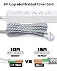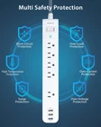 2 Pack Power Strip Surge Protector - 5 Widely Spaced Outlets 3 USB Charging Ports, 1875W/15A with 5Ft Braided Extension Cord, Flat Plug, Overload Surge Protection, Wall Mount for Home Office,White MORE BENEFITS 【8 IN 1 Power Strip】 - This surge protector with 5 widely outlets (1875W/15A) and 3 usb charging ports(Total 5V/3.1A) can power up 8 electrical devices simultaneously; Widely spaced outlets are separated enough to fit big adapters without blocking each other;is ideal for computer, TV and other household electrical devices 【Power Strip with USB】 - This surge protector with 3 USB charging ports provide 3.1A/15.5W in total. Built-in smart charging technology that detects and deliver an ideal input current of up to 5V/2.4A (the actual current is decided by the demand for the devices) 【 5 Surge Protector Outlet 】- With 3 complementary Surge Protection Circuits, TVS(transient voltage suppressor) MOV(metal oxide varistor) GDT(gas discharge tube), can absorb capacity of 900 Joules. It's more quickly and reliably than the traditional surge protector circuit, can protect your tv, computer from voltage fluctuations, surges and spikes("SURGE PROTECTED" indicator light on to show your devices are protected) 【 Overload Protection】 - Intelligent circuitry with built-in voltage sensing detects current power, When the rated power is exceeded, the switch will automatically shutoff to keeps your device safe. 1382℉ fire-resistance PC shell, high-quality components also can prevent your devices from over-current/over-charge/over-heated 【5Ft Upgrded Extension Cord & Wall Mountable】 - The 5ft-long extension cord is made of 14AWG pure copper, which is very thick and has better current carrying capacity (15A). The braided power cord is not easy to deform, durbale and more safety than other power cord. The 45°flat plug will not block the bottom receptacle of your duplex wall outlet. Two holes on back allow you install the power strip on wall, workshop, make your table clean