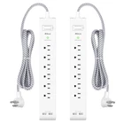 【Surge Protector Power Strip】- This slim power strip features 6 AC (13A/1625W) outlets 2 smart USB charging ports (5V/2.4A in total), 900-joule surge protection. Auto-adjust charging rate for Phones, pads, laptops, digital cameras, computers, TV, and more electronic devices. 【Overload Protection】- Surge protector with overload protection protects against spikes and fluctuations. The minimum energy-absorbing capacity of 900 Joules. Lighted on/off switch with an integrated circuit breaker for overload protection of all outlets. 【UL Approved Heavy Duty Power Cord】- 5 Ft pure copper braided extension cord (14 AWG 13A). The braided design makes it tangle-Free, improves flexibility, conductivity, durability, and reduces heat build-up. Fire-resistance PC shell, the fireproof shell can withstand temperatures up to 1382°F (750°C). 【45° Flat Plug & Wall Mountable】- 45°flat plug allows furniture to be pushed against the wall. Designed with 4 keyhole mounting slots on the base, allowing you to mount your power strip to the wall or desk to create a stable place to power up all of your devices. 【8 IN 1 Power Strip】- This surge protector with 6 widely outlets and 2 usb charging ports can power up 8 devices simultaneously; Widely spaced outlets are separated enough to fit big adapters without blocking each other.