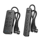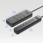 ✅Pack of 2 Power Bar:With 2 different power strips: 6 AC outlets and 2 USB ports(1 USB A Port+1 USB C Port), and only 6 AC outlets. Can be used on 120v to 240v circuit. USB power output up to 5V/2.4A total, auto-detect your devices and supply the maximum charge speed for your devices. ✅Multiple Protection power strip:This surge protector features surge protection rated up to 1080 joules to protect your electronics from spikes and fluctuations. The power switch also features overload protection, which automatically detects external loads and shuts off and disconnects all power at the first opportunity, protecting your equipment well. High-quality components also can prevent your devices from over-current/over-charge/over-heated. ✅Safety and Certificate:ETL safety certified. Made of high quality fireproof ABS+PC shell (Grade UL-V0, the highest fire rating), will not burn at high temperatures up to 1382℉, makes it more durable and longer lifetime. ✅Braided Extension Cord:4 Ft pure copper extension cord (14 AWG) which is very thick and has better current carrying capacity (15A). The braided power cord is not easy to deform, durable and safer than other power cord. The 45°angle flat plug will not block the bottom receptacle of your duplex wall outlet and easy access to tight spaces. ✅What you get:2 surge protector power strip. excellent 24-hour customer service and 3 years of free replacement service.