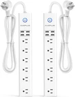 ☑️10 IN 1 Power Strip - With a 6 ft. heavy-duty extension cord, this surge protector with 6 wide outlets (1250W/10A) and 4 USB charging ports(Total 5V/3.4A) can power up 10 electrical devices simultaneously. It's ideal for home, office, dorm. ☑️Power Strip with USB - The surge protector power strip with USB ports can provide a 5V/2.4A maximum charging current per port (share 3.4A/17W). With a built-in smart IC (integrated circuit), it delivers optimal charging currents to your devices according to their need. ☑️Surge Protector with Overload Protection - Built-in 2100 J surge-suppression MOV(metal oxide varistor) protects your electrical appliances from lightning, power surges and spikes. When the rated power is exceeded, the switch will automatically shut off to keep your device safe. ☑️45° Flat Plug & Wall Mountable - The 45° flat plug will not block the bottom receptacle of your duplex wall outlet. Designed with 2 keyhole mounting slots on the base, allowing you to mount your power strip to the wall or desk to create a stable place to power up all of your devices. ☑️ What You Get: 2 pack power strips with usb. If you have any questions about this power strip, please feel free to contact us, we will reply to your message within 24 hrs. Product Description AUOPLUS Surge Protector Power Strip Surge Protector Power Strip with Six Outlets and Four USB Ports Why AUOPLUS Power Outlet? You have few wall outlets to plug into. Your Devices require bulky adapters that block other outlets. You want to charge your phone while sitting on the sofa but the sockets are too far away. When friends come to visit and they need to charge their iPads or smartphones, but there are no adapters. No worries! Our six-outlet, four-USB-port power strip is the solution. Widely spaced outlets allow large adapters to plug in, and four USB chargers provide great convenience-you don’t need an adapter to charge your USB devices. The 6 ft. heavy-duty extension cord allows for flexible distance in any room. AUOPLUS POWER STRIP SURGE PROTECTOR Widely spaced with 6 ft. extension cord Organize multiple consoles, TVs and routers in one small package. Bulky power adapters are common. This power outlet spreads them out so all the AC outlets can be used when you need them. Four High-Speed USB Chargers for USB Devices With built-in, smart IC technology, four USB ports provide up to 5V/2.4A max to each USB charger( total 3.4A), Perfect for devices such as iPhone, Huawei, Samsung, iPad, and Kindle. Specifications: Max Wattage: 1250W Surge Protection: 2100J Maximum Current: 10A Voltage: 110V-125V MOV Clamping Voltage: 775V Cord Length: 6 ft. USB Output: 5V/3.4A Multi Protection: Overload/Surge/Spikes/Lightning/Overvoltage/Overcurrent/Short Circuit Protection 2100 Joules Surge Protection The three-level complementary surge protector circuit composed of a TVS (transient voltage suppressor), MOV (metal oxide varistor) and GDT (gas discharge tube), with 2100 J energy-absorbing capacity, protects your devices much more quickly and reliably. 6 ft. Extension Cord with Velcro Tie Made of 18 AWG copper wire. Built-in high-conductivity phosphorus copper helps to prolong performance time. The 6 ft. cord length is ideal for most purposes, easily reaching behind desks, sofas, and other home and office furniture. For more convenient, space-saving use, we provide a Velcro tie to organize the 6 ft. long extension cord to save more spaces. Overload Protection with Indicator An indicator light on the top of the power strip lets you know the safety situation of your electronic devices. The power strip provides max 12.99 A current protection for your devices. 45° Right Angle Flat Plug Equipped with a right angle flat plug for fitting in tight spaces, perfect for your nightstand, dresser, workbench, worktop, or tabletop. 1382℉ Heat-Resistant Shell and Widely Spaced Outlets Quality polycarbonate shell, flame retardant, insulative and crush resistant.There are five wide-paced and one extra-wide-spaced outlet on the socket panel; various widths better satisfy your plugging needs. Wall Mountable (Screws Not Included) This mountable power strip is designed with two mounting holes on the back for simple installation. Easily attach to the wall under the kitchen table, or in the cupboard, vertically or horizontally. Add to Cart Add to Cart Add to Cart Add to Cart Add to Cart Add to Cart Customer Reviews 4.8 out of 5 stars 11,331 4.8 out of 5 stars 11,331 4.8 out of 5 stars 11,331 4.8 out of 5 stars 11,331 4.8 out of 5 stars 1,851 4.8 out of 5 stars 1,851 Price $19.99 $ 19 . 99 $19.99 $ 19 . 99 $28.99 $ 28 . 99 $28.99 $ 28 . 99 $19.99 $ 19 . 99 $22.99 $ 22 . 99 Qty of AC Outlets & USB 6 Outlets + 4 USB 6 Outlets + 4 USB 6 Outlets + 4 USB 6 Outlets + 4 USB 5 Outlets + 3 USB 5 Outlets + 3 USB Wattage 1250W 1250W 1250W 1250W 1250W 1250W USB Output 3.4A 3.4A 3.4A 3.4A 3.1A 3.1A Overload Protection ✓ ✓ ✓ ✓ ✓ ✓ Surge Protection 2100 Joules 2100 Joules 2100 Joules 2100 Joules 1050 Joules 1050 Joules Cord Length 10 FT 10 FT 15 FT 15 FT 5 FT 10 FT