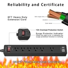 【Power Strip with 6 Outlets & 3USB Ports】:5AC Surge Protector Outlets And 1 Widely Spaced Outlet(1680 Joules), 2USB ports And 1USB C Port (Total:5V/3.0A, 15W) , 6 feet power cord (1625W/13A), Surge protector indicator and 13A Overload Protector switch protects against spikes and fluctuations.Wide range voltage design, can be used on 120v to 240v circuit. 【Smart Charging USB Ports】: Build in smart charging technology, This USB charger will detect your devices automatically and Each USB A port features 5V/2.4A Max output, USB C charging port features 5V/3A MAX. 3 USB ports ( Total 5V/3.0A/15W) can charge almost any USB device (smart phone, tablet, Amazon Kindle, fire stick, e-reader, blue tooth headphones, portable speaker etc). NOTE: The UCB-C port is not Quick Charger 3.0, doesn't support any other devices which need 9~22V charging voltage. 【Surge Protector Outlets】: The 6 AC outlets provide surge protector against electrical spikes. Three complementary Surge Protection Circuits, TVS (transient voltage clamp) MOV(metal oxide varistor) GDT(gas discharge tube), with response speed less than 1Ns, and minimum energy-absorbing capacity of 1680 Joules, its response time is much shorter than the single MOV surge protector circuit, It truly provides great protection of your precious plugged-in devices. 【6 Feet Flat Plug Extension cord with Cable Ties】: - 6 Ft Power Cord makes it more flexible,Reusable Fastening Cable Ties Can tie up the unused cord and make it better organized. the Mounting hole at the back allows this wall mount power strip to be securely installed in various applications, such as wall mounts, floor mounts, workbenches, under counters & more. 【Our After Sale Service】: Our friendly and reliable customer service will respond to you within 24 hours. You can purchase with confidence, with our 30-day return and 12-month replacement.