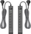 2 Pack Surge Protector Power Strip with 6 Outlets 2 USB Ports 5-Foot Long Heavy-Duty Braided Extension Cords Flat Plug 900 Joules 15A Circuit Breaker Wall Mount for Home Office ETL Listed 6 outlets surge protector power strip with 880-joule surge-protection rating provides 3-line comprehensive surge-protection for computer, TV and other household, office electrical appliances · 5-foot long heavy-duty surge-protected power cord with right angle plug; Keyhole mounting tabs for installation in a wide variety of applications · Slim, sleek and compact design reduces office clutter; Detachable cord-management velcro cord for cable organization · Lighted power switch with an 15-Amp circuit breaker to signify your devices are protected from power surge, over-heated, overload, over-charging · ETL listed. Mifaso 18 months Warranty and friendly customer service. MORE BENEFITS 【Surge Protector for All】 - 6 outlets surge protector power strip with 900-joule surge-protection rating provides 3-line comprehensive surge-protection for computer, TV and other household, office electrical appliances from voltage fluctuations, surges and spikes. 【Power Strip with USB】 - This slim power strip features 2 USB charging ports (5V/2.4A Each) and 6 AC Electrical outlets. 2 USB charging ports with smart technology sharing 2.4A power, auto-detect your devices and supply the maximum charge speed for your devices. 【Upgraded Power Cord】 - Mifaso 5-foot long UL Approved heavy-duty surge-protected Extension Cord (14 AWG 15A) with right angle plug; 2 Keyhole mounting tabs for installation in a wide variety of applications. 【Electric Strip with Overload Protection】 - Slim, sleek and compact design reduces office clutter; Lighted power switch with an 15-Amp circuit breaker to signify your devices are protected from power surge, over-heated, overload, over-charging,Fire-prevention ( 1382℉. ) 【ETL listed】 - ETL listed, securer and safer. Mifasopower provide worry-free 12 months and friendly customer service.