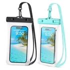 2 Pack Waterproof Phone Pouch [ 3D Clear Soft Edges]- Waterproof Black & Green