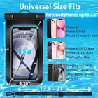 Return Policy Fast Delivery Trusted seller 2 Pack Waterproof Phone Pouch with Adjustable Lanyard for iPhone 15 14 13 12 Pro Max, for Samsung Galaxy S24/S23 up to 7.5", IPX8 Cellphone Water Proof Phone Case Dry Bags Black/Green Product Description [Waterproof Protection] Certified IPX8 waterproof phone pouch,the maximum water depth is 30m.Multi-protection for full waterproof, snowproof, dustproof and sandproof protection, can protect your cell phones to stay dry.Travel essentials for various water activities and vocation,such as beach playing,cruise ship,shiping,surfing,water park, swimming, snorkeling,boating,skiing, kayaking, rafting [Large size and Adjustable Lanyard] The size of water proof phone pouch is 8.3inches,can fit most cell phones with or without a case,comes with a detachable lanyard from 13.8 to 21 inches, which can be adjusted at will, freeing your hands [Sensitive Touch] This water proof dry bags with adjustable lanyardis made of upgraded PVC material that has high transparency and make more sensitive touch,can be used your phone freely underwater [Clear Picture Underwater] With the transparent material,you can catch your moment underwater and clear picture,but【NOTE】Cell phone may suffer hydraulic pressure under certain water depth , which will imfact the operation of the touchscreen.Please take photos by volume buttons in this case [Test Before Use] First put a tissue into the cellphone waterproof phone bag,squeeze air before sealed.Then submerge underwater for about 30 minutes.Last take out the tissue to check out if t is water.If you find any quality problems, please let us know, we will solve your problem within 24 hours Shipping Returns Payment Shipping Shipping is FREE to all addresses other than APO/PO boxes in the lower 48 states. All our stock ships from US-based warehouses. Shipped via USPS or UPS (depending on location and package weight) Unless stated otherwise, all orders will ship within 24-72 hours of your payment being processed. Check our feedback to see the great reviews of FAST shipping we offer. Returns Seller does not accept returns Payment We currently accept payment via eBay managed payments only. Once payment is cleared, we will dispatch your shipment within 1-3 business days. Please refer to the "Shipping" tab for more information regarding shipping speed to your destination.