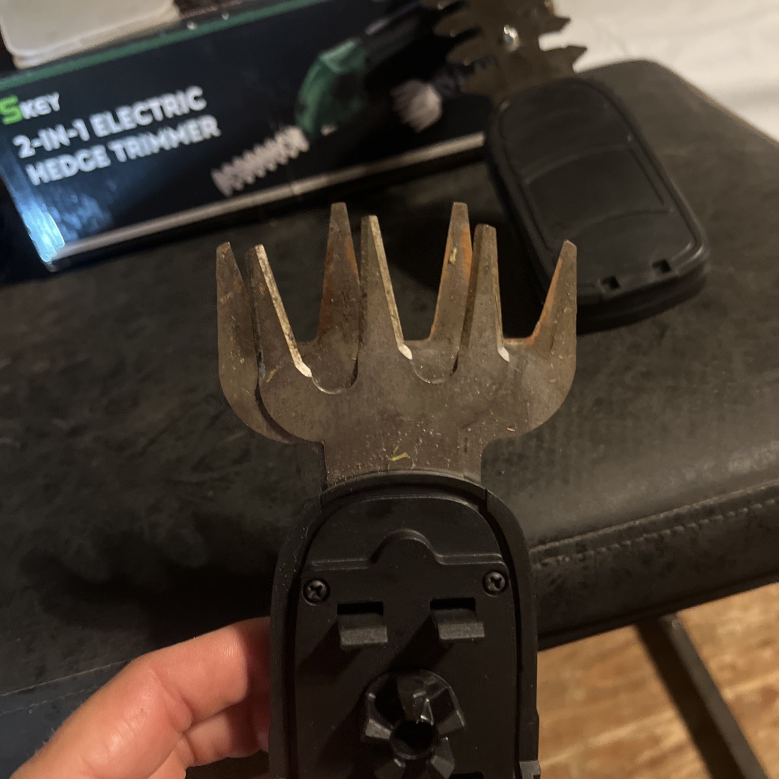 The SKEY 2 in 1 Cordless Grass Shear & Hedge Trimmer is a versatile electric bush trimmer powered by a 2000mAh Li-ion battery. It comes with a grass shear attachment, pruning scissor, rechargeable battery, and fast charger. The trimmer features a cutting area of 5-1/2 x 2-3/8 inches and a cordless design for ease of use. Made of alloy steel, this hedge trimmer is lightweight at 2lbs 8oz and easy to assemble, making it an ideal tool for maintaining your yard and garden.