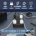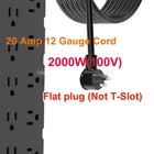 20 AMP 2000W power strip with flat plug: The Massive Powerhouse Large 20 amp power strip with normal flat plug (Not T-plug) is designed for many devices simultaneously pluging in one power strip.The rated power capacity is 2000W (20A-100V rated) or 2500W (Max.). The power strip is quipped with 25 grounded AC outlets and 6 USB ports. 1.8 in spaced outlets, and flat plug (instead of T-plug) is versatile for most common places, when you need a power strip for plenty ampliances , This power strip is an ideal type. Long and heavy-duty extension cord: The heavy duty 12 gauge AWG extension cord is 6.5 feet long, providing sufficient length and multi plug outlet for any heavy device use simultaneously. Perfect for home theaters, offices, gaming rooms,supper market,garage,factory etc.. Diverse Charging Outlets: Our power strip offers 6 USB ports including 4 USB-A & 2 Type-C ports, with built-in smart charging technology for faster and intelligent device charging. 4000 Joules surge protection: Incorporates 4000 Joules of surge protection, offering extensive protection against voltage spikes for connected devices. Combines a heavy duty surge protector with eight safety features to ensure the protection of you and your devices. includes fire resistance, overload / grounded / over current / over voltage / short-circuit / over-heating protection, and offers a high energy absorbing capacity of 4000 Joules. The system is composed of a 3-level complementary Integrated Circuit consisting of TVS (transient voltage suppressor), MOV (metal oxide varistor), and GDT (gas discharge tube) Versatile and Space-Saving Design: Our power strip features an easy-to-mount design with two keyhole slots and two hanging holes, along with a 45° angled flat plug, making it perfect for tight spaces.All products supplied by NANOLAKE through online shop on all Amazon marketplaces are covered by liability insurance.