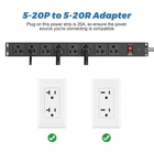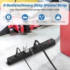 20 Amp high amp heavy duty power strip with metal housing, wall mountable and come with 8 outlets design,the center hole distance of AC socket is 1.57inch,can be applied to high power industrial equipment and more appliance. 20 Amp Surge Protector Power Strip: 1200J overload protection. 20A Circuit Breaker and surge protector reset and switch On/Off power. AC rating: 20A /125V /2500W. Garage heavy duty power strip with 12 gauge cord enough for larger surges, with 5-20P power cord, 5-20R T-Slot adapter for more appliance. Please Note:Nema 5-20P T-Plug,the power strip has a 20A plug and the wall or other source of connection to the power strip must be compatible as such. Mountable Industrial Power Strip: come with two side keyhole slots and srews enable mounting with vertical or horizontal installation or put it on the ground any suitable places. Sturdy and durable, well made power strip and great for a workshop garage , Please protect if used as outdoor power strip. us if you have questions.