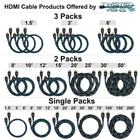 200 FT cables support signals up to 1080P 60hz. cables work with all HDMI compatible devices, including 4K TVs and monitors from brands such as Samsung, LG, and Sony, and input devices such as Xbox, Xbox 360, Xbox One, Wii, Fire TV, Blu-Ray Players, etc. cables are type high speed with Ethernet to support HDMI Standard 2.0b and are backward compatible with earlier HDMI standards such as 2.0a, 2.0, 1.4 and 1.3. They support HDMI functions such as Ethernet, Audio Return Channel (ARC), wire for power, and CEC. They are HDMI to HDMI and male to male. maximum length non-amplified cables can replace HDMI Extension cables or HDMI extenders with a reliable single piece solution. cables come with a protective braided jacket, a tough-flex connector neck, and 24K gold plated contacts. Package includes: One or more cables (see title), One 270° left angle adapter and Three easy-re-closable micro fiber cable ties. Cables come with a lifetime guaranty. offers a variety of HDMI cable sizes and packs. 1.5ft, 3ft and 6ft cables come in single or triple packs. 8ft, 10ft, 12ft, 15ft, 20ft, 25ft, 30ft and 50ft cables come in single or double packs. 75ft, 100ft, 150ft and 200ft cables only come in single packs. also offer right angle and left angle (90 degrees and 270 degrees) elbow adapters. These can all be found at Amazon by searching for "HDMI ".