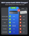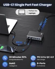 【Super-Fast GaN III USB C Charger】The Latest Design USB Charger with 200W Total Power and Multiports, adapted GaN III generation chip technology, higher resistance to radiation, longer-lasting life, upgraded heat dissipation, faster, smaller and safer without sacrificing a drop of power. The usb ports upport advanced PPS,PD3.0 and QC4.0 technology. It built-in advanced intelligent controlling IC and multi-protection safety system to ensure safety for you and your devices. 【200W Powerful USB C Charger Block】The GaN3 usb c charging station deliver the total 200w optimal power output to charge 8 different device at full speed simultaneously. Unlike most chargers with false advertising and outputs that slow down when multiple ports are used. 【USB Charging Station for Multiple Devices 8 Ports】Power up multiple devices simultaneously with 8 ports, 4 USB-C Ports and 4 QC USB-A Ports, delivering high-speed charging for Macbook Pro 13” (with our usb c1 port of 65w),iPhone 15/16, Android Samsung Galaxy S23. Universal Compatibility for any smartphones, tablets, laptops and more USB smart devices. 【Portable USB C Charging Hub for travel】 Small size saves you 50% space and fits easily into handbags and travel cases. The design with 1.5M/5FT AC extension power cord allows you to charge as you want without worrying about the limitation of distance. 【Fast USB Charging Station with Lifetime Services】1 x USB C Charger(8-IN-1,200W), 1 x Power cord, 1 x Instructions. With this usb charger, no more hunting for outlets or lugging around a bunch of chargers anytime anywhere, you can say goodbye to tangled cables and messy clutter, getting an organized and clean desktop. Much simplify your life! 【Upgraded 65W for MaceBook Charger】Our USB C charger has a high charging efficiency of up to 96%, it has one 65w fast charger output to charge laptops and 2 phones at the sametime. the usb-c power adapter compatible with MacBook Pro/Air, Microsoft Surface, Dell XPS, Samsung Galaxy, iPad Pro, Steam Deck, iPhone, Google Pixel, covering a whole family needs and save money&space.