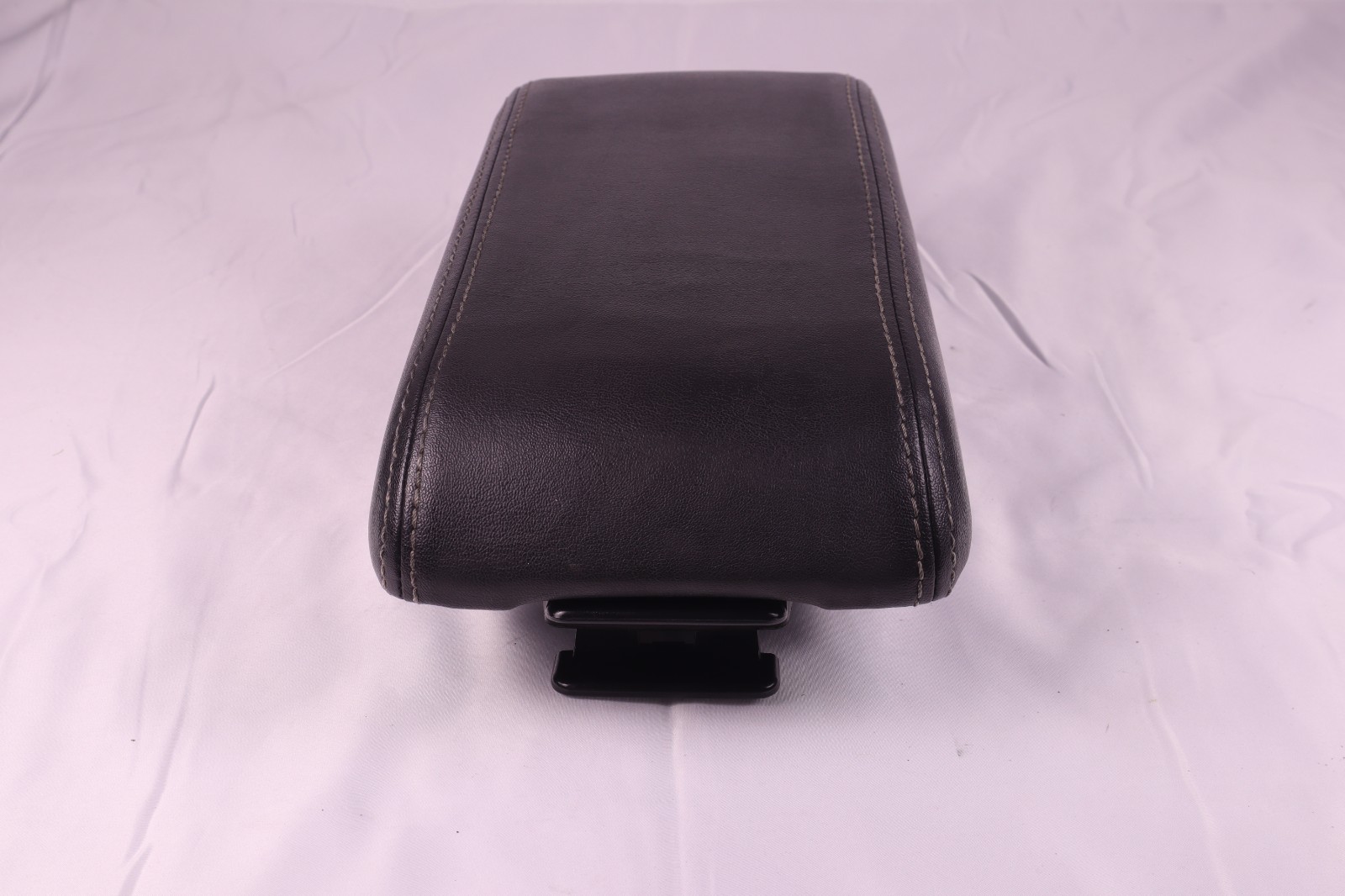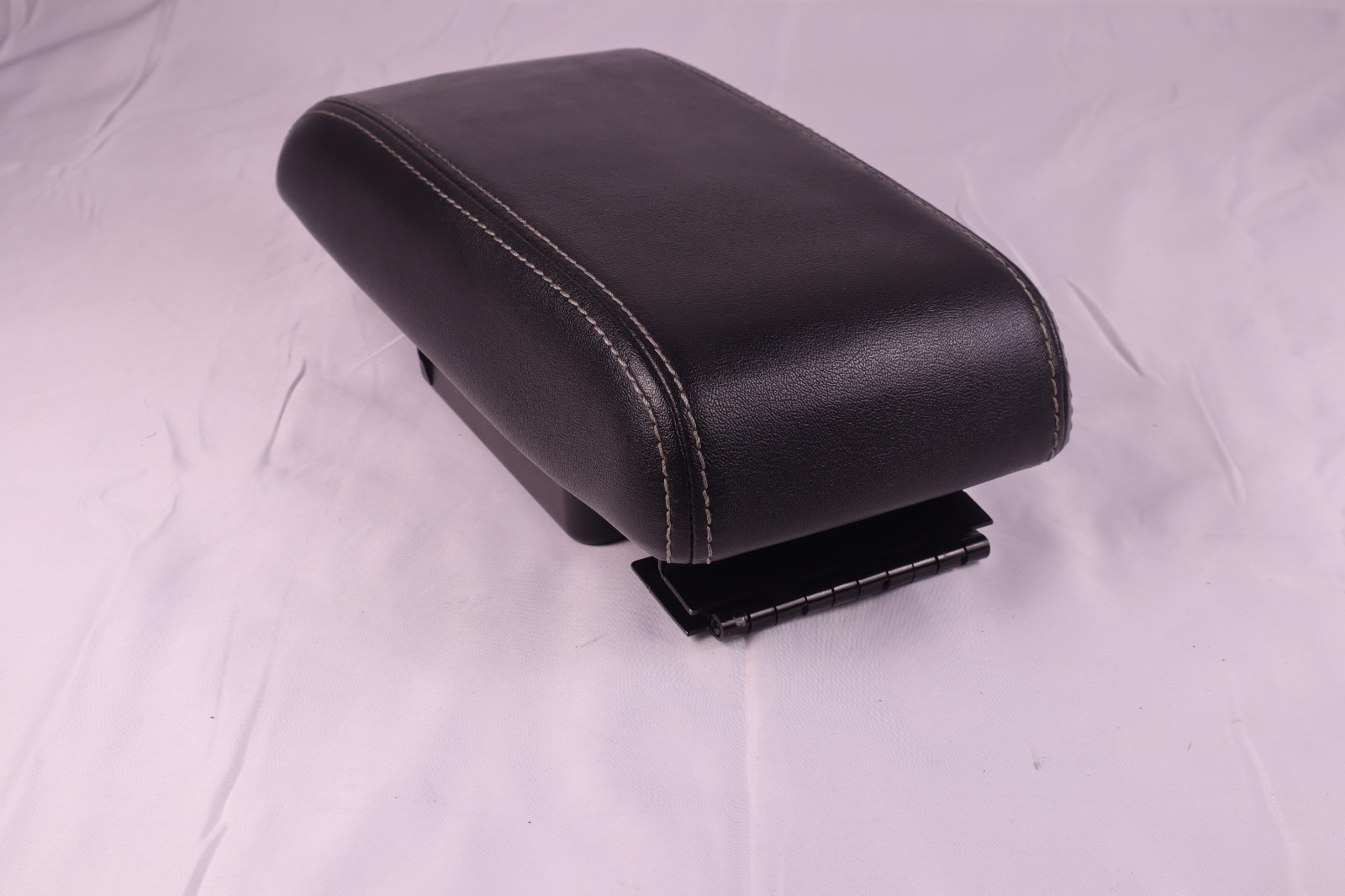 The product is a genuine OEM Ford Fusion leather center console armrest lid with storage in black color. It features white stitching and is made of vinyl and leather materials. This console lid is designed for easy installation in the front center of the vehicle and is guaranteed with a 1-month manufacturer warranty. It is a high-quality part made in the United States by Ford, ensuring a perfect fit and lasting performance for your vehicle.