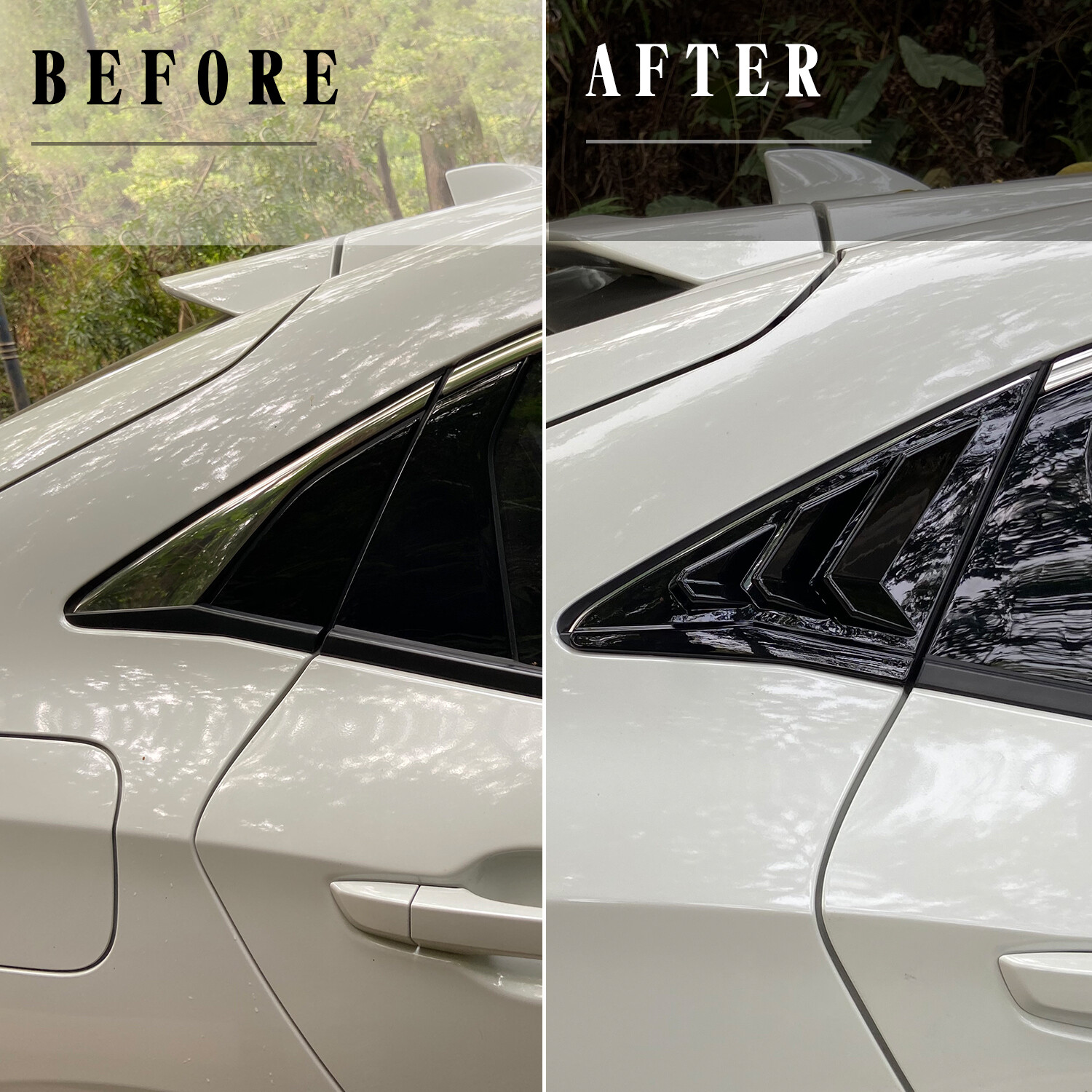 These stylish window louvers add a dash of flair to your Honda Civic. Made to precisely fit your vehicle. The high-quality louvers are constructed of durable ABS plastic for long-lasting use in all weather conditions. Personalize your driving experience and improve airflow, so you can reduce energy consumption. Easy to install with no drilling required, Align the position and paste it. Suitable for: 2016-2021 Honda Civic Hatchback Product information: Left and right 2PCS, 3m double -sided tape. Material: High quality ABS; color:carbon fiber print; Advantage:Heat resistance, friction resistance, corrosion resistance. Don't worry about deformation. For 2016-2021 Honda Civic Hatchback Rear Side Window Louver Shutter Cover Blinds Features: 1.These stylish window louvers add a dash of flair to your Honda Civic. Made to precisely fit your vehicle. 2.The high-quality louvers are constructed of durable ABS plastic for long-lasting use in all weather conditions. 3.Personalize your driving experience and improve airflow, so you can reduce energy consumption. 4.Easy to install with no drilling required, Align the position and paste it. Suitable for: 2016-2021 Honda Civic Hatchback Product information: Left and right 2PCS, 3m double -sided tape. Material: High quality ABS; color: carbon fiber print ; Advantage:Heat resistance, friction resistance, corrosion resistance. Don't worry about deformation. Shipping Return Warranty After-Sales Contact us Shipping Handling time: 1-3 day Shipping Cost : Free to US Shipping time: Business days in USA All the items will be dispatched via UPS/FedEx/USPS. Return If you are not satisfied with the item after receiving the item, contact us within 7 days, we will try best to serve you; Usually we will cover the shipping except in individual cases; Returns allowed for 30 days on unwanted items; Item must be unused and unopened; Return postage to be borne by buyer if you used the item or demaged it; Damaged or Faulty Items - please inform us on receipt and we can arrange for replacements/returns/refunds on an individual basis; This does not affect your statutory rights. Warranty Warranty after receiving; Buyers pay return and replacement shipping cost; We will not refund any labor cost; After-Sales If it happens that the lights get moisture after you install them on your car, it would be normal for first time using. You just need to keep using for a period of days, the moisture will disappear. because there is inner air cycling in the lights as we design. As for headlights, you can also open the cover of low/high beam so that the moisture will out more quickly. If the moisture still exist, please feel free to send us message for help, we will try our best to help you. After you install, if you find that there have function does not work, please check if the harness is connected correctly, and exchange the left and right , If it still does not work, please rember take some photos or videos, please feel free to contact us. Contact us Any question will be replied within 24 hours except the weekend and holiday. Please contact us by email before opening return, we will try our best to help you. On Jan 12, 2025 at 23:14:55 PST, seller added the following information: