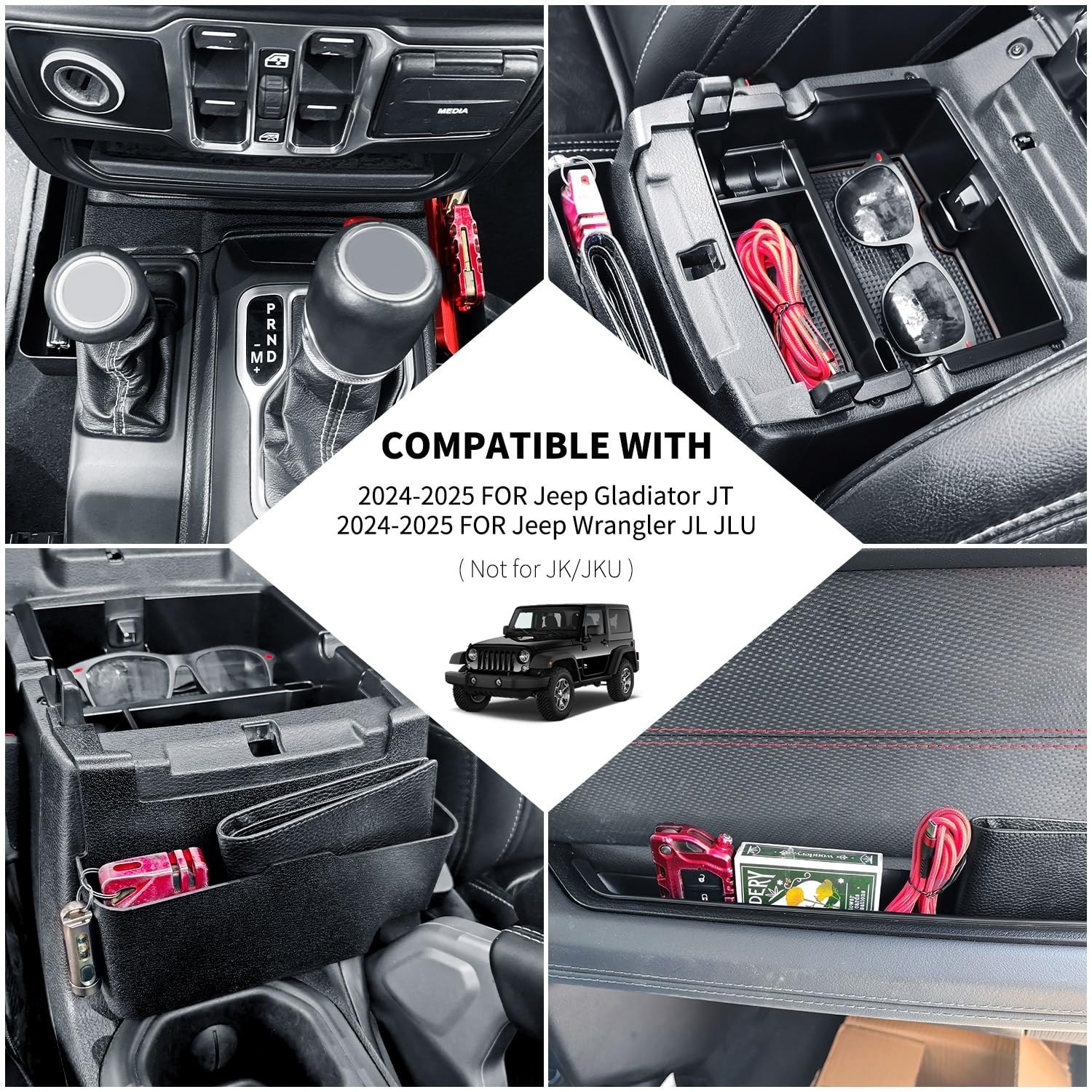 This center console organizer is a game-changer for my Jeep JL! The upgraded design fits perfectly and doesn’t interfere with the airbag or storage access. It’s super sturdy, scratch-resistant, and keeps everything neatly in place—no more loose items rattling around. The compartments are spacious yet compact, making it easy to organize my phone, wallet, and small essentials. Installation was a breeze, and it feels like a factory upgrade. Highly recommend for anyone looking to maximize their Jeep’s storage without sacrificing style or safety!