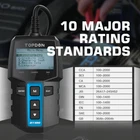 2024 NEW! TOPDON 12V Car Load Battery Tester Digital Analyzer Tester LCD Screen TOPDON BT100 Car Battery Tester 12V Load Tester, 100-2000 CCA Automotive Alternator Tester Digital Auto Battery Analyzer Charging Cranking System Tester for Car Truck Motorcycle ATV SUV Boat Yacht Brand TOPDON Power Source Battery Powered Style For cars/ trucks/ Boats Color BT100 Item Weight 0.56 Pounds About this item [Car Battery Tester] You can easily test and inspect your 12V lead-acid battery with this TT TOPDON car battery tester. The SOH (State of Health), SOC (State of Charge), Voltage, Current, Rating, and numerous other understandable analytical data are provided by this battery tester. It is compatible with 100-2000CCA regular flooded, AGM flat plate/spiral, EFB, and GEL for their optimum performance. [Wide Application] This 12V battery load tester can only be powered on once it is properly attached thanks to a safe passive testing approach. You may test the batteries of a number of vehicles, including cars, motorbikes, trucks, RVs, ATVs, SUVs, boats, yachts, lawnmowers, and even golf carts, without needing to charge the device first. [3 Testing Function] A battery health test will determine whether or not the battery is in excellent operating order. A cranking test will determine whether or not the electrical system has sufficient power to start the engine. Check to see that the charging current, rectifier diode, and generator are all functioning normally. This handy auto battery analyzer makes sure your summer road trips won’t end on a flat. [Ergonomic Features] To help you rapidly determine the health of the battery, this load battery tester is built with three different colors of LEDs. It's easy to use because it operates through a menu system. Additionally, for a reliable and secure connection during the testing process, premium-quality copper clamps have polarity reverse prevention and spark proof features. [Great Choice] The TOPDON BT100 is small and compact, making it simple to keep in a glove box or center console. This battery load tester's rapid and precise results will enable you to decide whether your car battery needs to be replaced or jump-started making it an excellent choice for auto shops, garages, and DIY users who frequently check batteries. Product Description Check Your Battery Before It Dies A Minor Investment Saves You from Headache Were you sitting in the car and wondering why you can’t start the car? The cause of this may be a flat battery. Try this 12V car battery tester, so you can: Avoid failed cold-weather starting, and a roadside breakdown. Keep a close eye on battery status, and fix potential problems. Regular battery check to lengthen its lifespan; make sure it works at an optimum level. Save mechanic costs and many more. What can TOPDON BT100 do? Wide Battery Coverage: works for 100 to 2000CCA regular flooded, AGM flat plate, AGM spiral, Gel, and EFB; Multiple Unit Systems: CCA, BCI, CA, MCA, JIS, DIN, IEC, EN, SAE, and GB. Battery Health Test Result: SOH (state of health), SOC (state of charge), CCA value, voltage, internal resistance, etc. Cranking/Starting Test: predict if the battery will fail to crank/start a vehicle. Charging Test: helps determine if the output voltage of the generator, the rectifier diode, and the charging current is normal. 3-LED Indicators: easy to tell if battery’s good (Green), there’s a warning (Orange), or there’s a serious issue (Red). Convenient Test: support both in-vehicle and out-of-vehicle test; no need to remove the battery out of vehicle. Built-In Protection: polarity reverses connection protection with spark proof; no heat generated while operating, or cause battery discharge. Easy & Quick Operation: show concise suggestions in seconds (Good, Bad, Recharge, Replace), with menu buttons to navigate easily. Multilingual Menu: English, Russian, Spanish, French, Italian, German. Note: For load test, please connect the product to your car and ignite the car on. Cranking Test If your battery is 4 or more years older, and it does not seem to crank your engine at a normal speed, you probably need a new battery. This 12V battery tester can show you the cranking voltage, and the cranking time in milliseconds, to help predict if the battery will fail to crank/start the vehicle. Loaded Voltage means the voltage measured when turning on on-board electrical appliances, such as headlights. Unloaded Voltage means the voltage measured when turning off all the on-board electrical appliances. Charging Test Use this battery load tester to check if the generator provides sufficient power to the vehicle electrical system, and if the battery can hold the charge. More data are also included: CCA value/rating, voltage, internal resistance, state of health (SOH), and state of charge. State of health (SoH) is a figure of merit of the condition of a battery (or a cell, or a battery pack), compared to its ideal conditions. Show Battery Health This automotive alternator tester will display test results: “GOOD, BAD, REPLACE, or RECHARGE”, concise and easy to understand for your quick reference. GOOD BATTERY: Battery is in good condition, no worries! GOOD, CHARGING: Good battery but low voltage, charge before using. REPLACE: Battery almost reaches the end of the using life, please replace it for car running. BAD CELL, REPLACE: REPLACE: Battery is interior damaged, bad cell or short circuit, replace it. RETEST AFTER CHARGING: Low voltage, charge and retest to avoid error. In / Out of Vehicle This car battery tester has a fast scan time to run a battery system test to check battery overall health, and the status of your alternator and battery. Stay Safe Always The risk of causing damage tends towards zero when using this load tester. At the end of the durable cable are larger-sized clamps than the competition for a more secure fit. Easy Battery Tester This entry-level auto battery analyzer is made for newbies, with helpful features such as extra-l