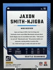 This 2024 Panini Donruss Football card features Jaxon Smith-Njigba, a player from the National Football League (NFL) team Seattle Seahawks. The card is made of card stock material and is an original, not a licensed reprint. It belongs to the base set and has the card number 16, with no autograph. The card is in standard size and was manufactured in the United States in 2024 by Panini. It is a great addition to any football fan's collection and perfect for those who love trading cards. Get this card now to add to your collection!