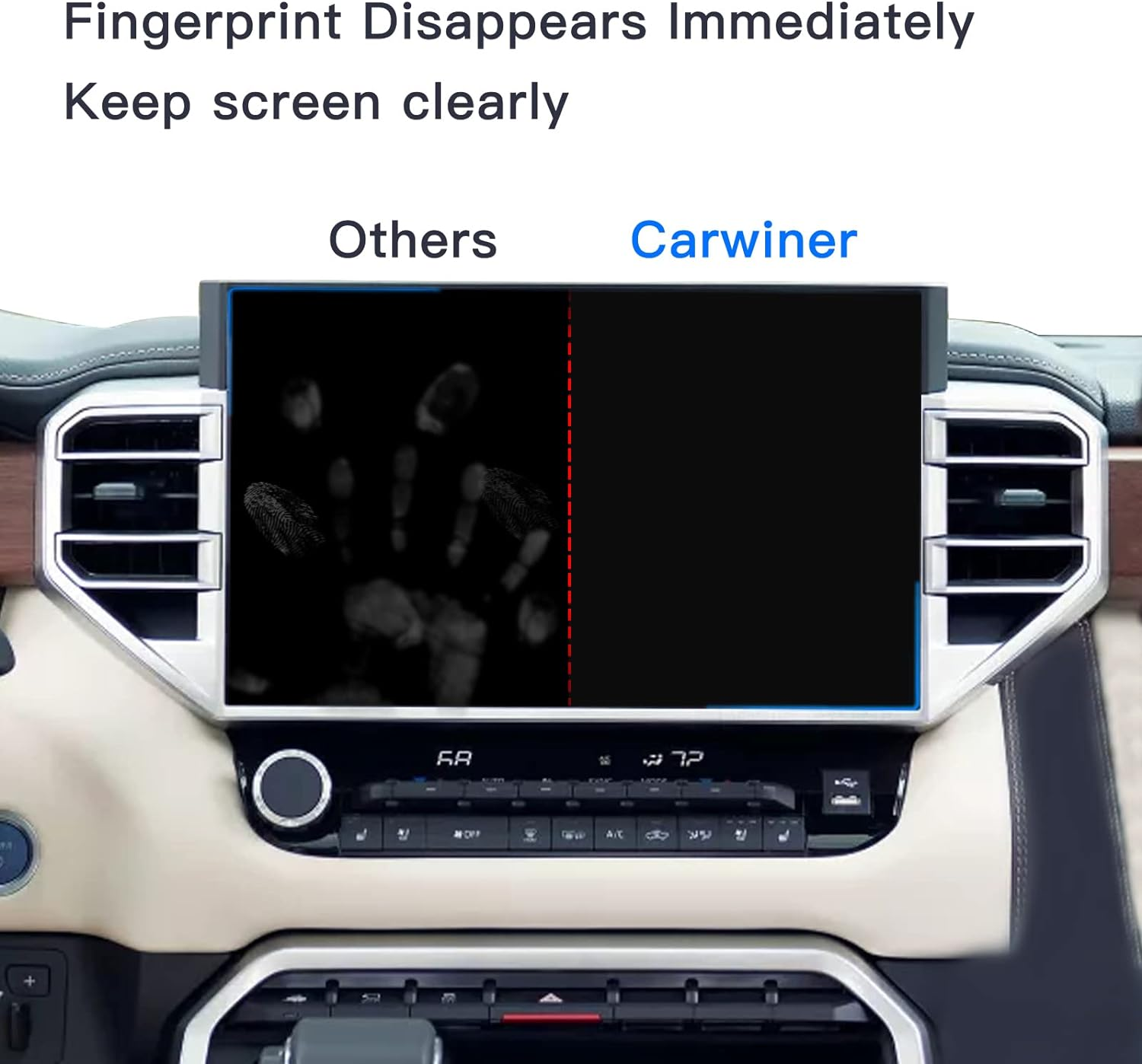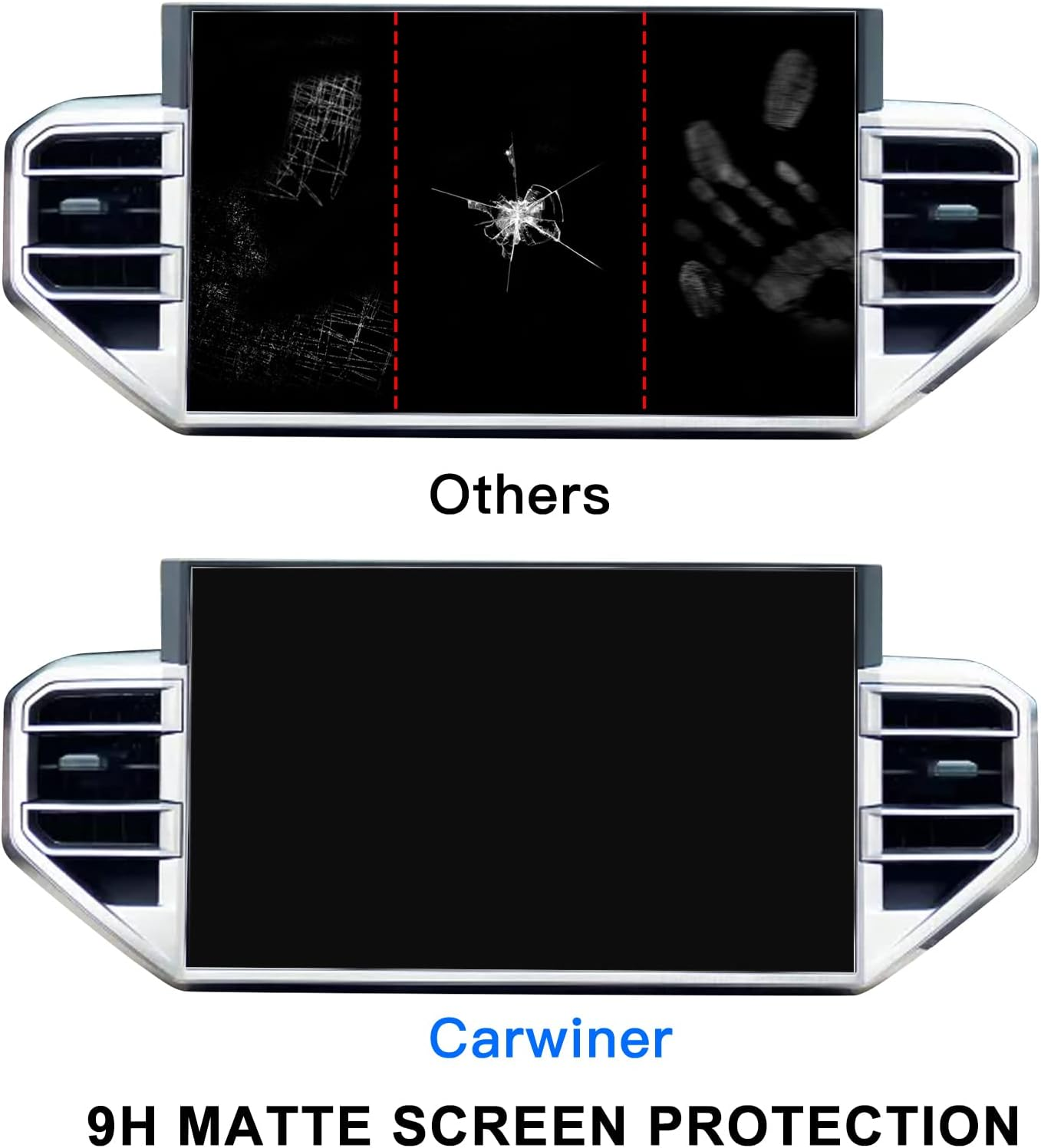 Compatible With: Our 14-inch screen shieldor is compatible with 4th Gen 2024-2025 Toyota Tacoma Limited/TRD Pro/Trailhunter, 2022-2025 Toyota Tundra, 2023-2025 Toyota Sequoia, 2025 Toyota 4Runner 14-inch screens, offering a precise and seamless fit for your device (Not Compatible with 8-inch screens) Laser Cutting and Precise Fit: Laser cutting technology ensures precise sizing and high compatibility with your device Fingerprint Resistance: The screen shieldor features an oleophobic coating that repels oils from fingerprints, providing a smoother touch and reducing the need for frequent cleaning 9H Hardness: The tempered glass screen shieldor has a thickness of just 0.3 mm and a surface hardness of 9H, significantly tougher than standard PET film, which typically has a hardness of 3H Easy Installation: Align the shieldor with your screen and use the included accessories for a straightforward installation process; similar to cellphone screen shieldors, it takes only a few minutes to complete Carwiner Screen Protector for 2024-2025 Toyota Tacoma Limited/TRD Pro/Trailhunter 2022-2025 Tundra 2023-2025 Sequoia and 2025 Toyota 4Runner 14Inch Screen Protector 2024 Tacoma Accessories (MATTE)