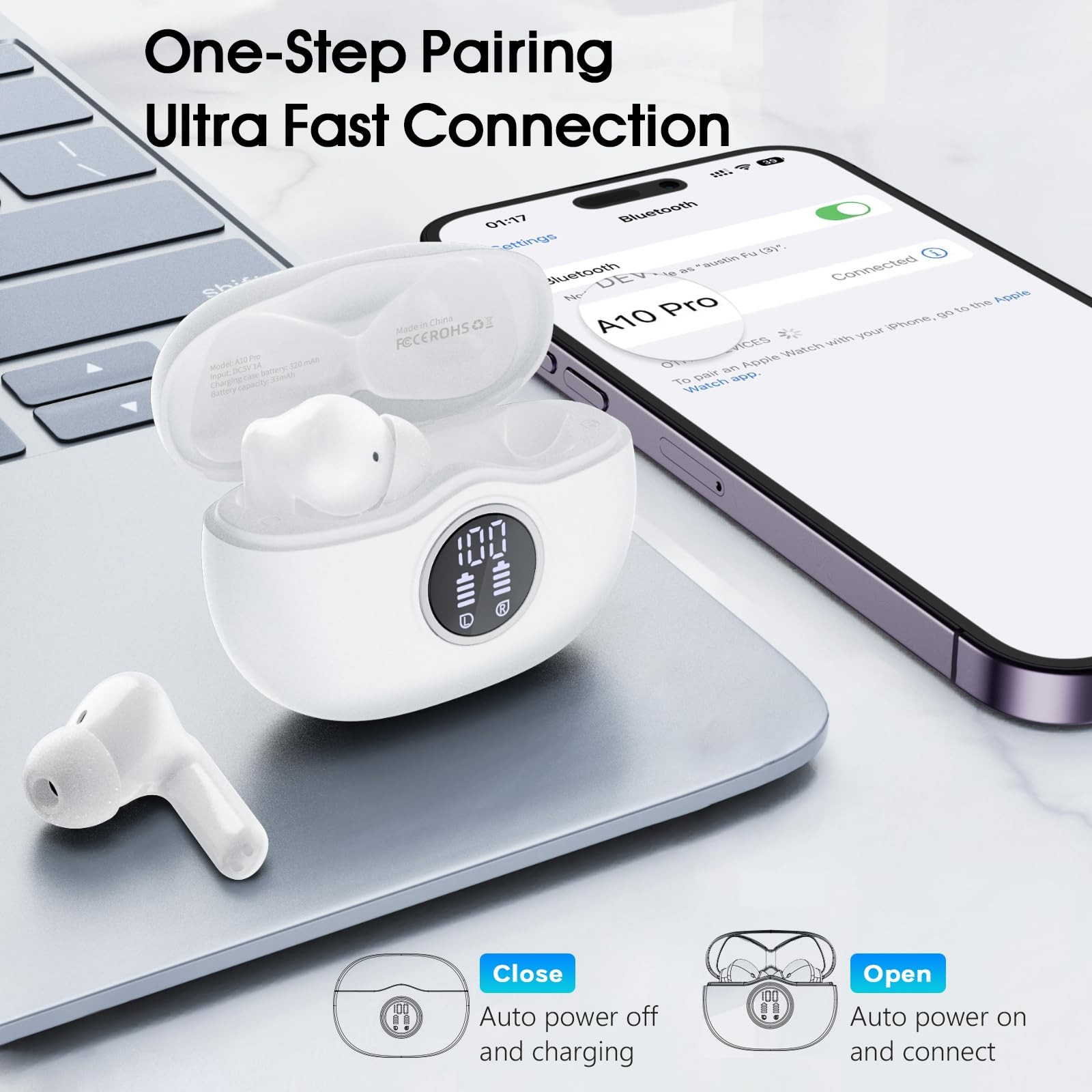 Wireless Earbuds One Step Auto Pairing: The latest Bluetooth 5.3 version has fast transmission speeds, so you always get a stable connection, even in busy crowds. Compatible with iOS/Android/Windows devices etc Comfortable to Wear: This wireless earbuds have an ergonomic shape and come with a variety of sizes of earcups so can fit comfortably in our ears Sound with Exceptional Detail: The earbuds produce powerful bass, clear mids, and bright highs with the exclusive dual-layer 12mm diaphragm drivers Smart Touch Control: We can easily control play/pause, switch songs, adjust volume, answer/hang up, reject calls, or enable voice assistance with a simple click or press Long, Powerful Battery Life: Get 6 hours of battery life on a single charge with a battery case that extends up to 50 hours. If the true wireless earbuds are low on power, a quick 10-minute charge provides 2 hours of playtime